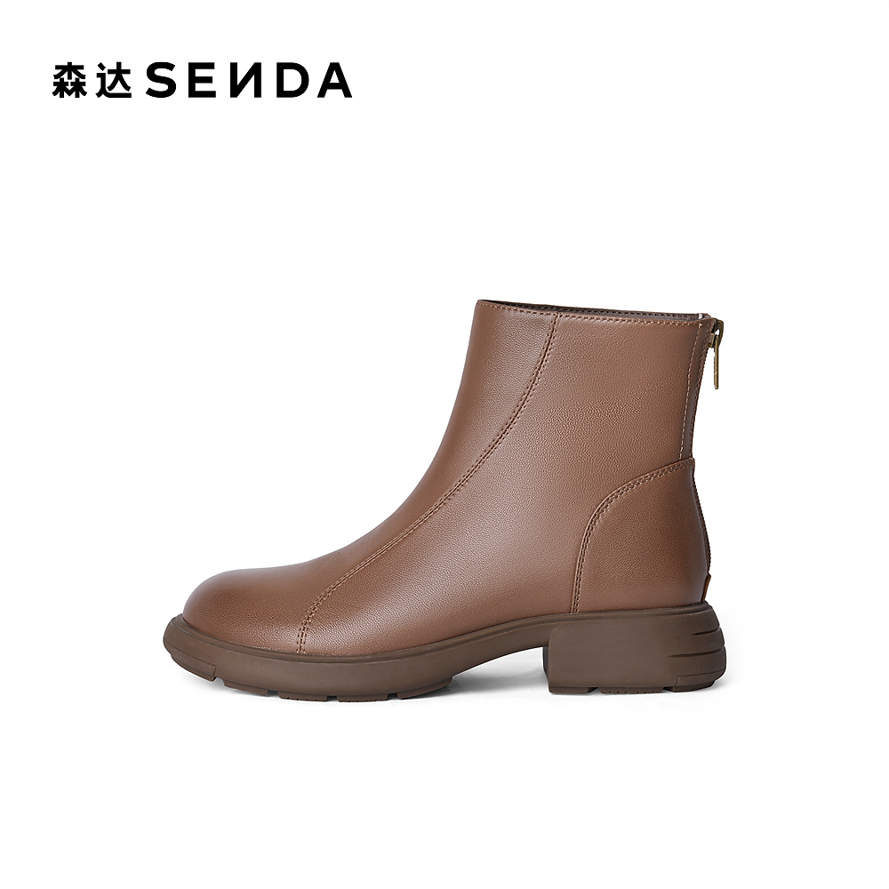 森达超软羊皮弹力靴女鞋冬款商场同款百搭厚底增高休闲短靴XCR01