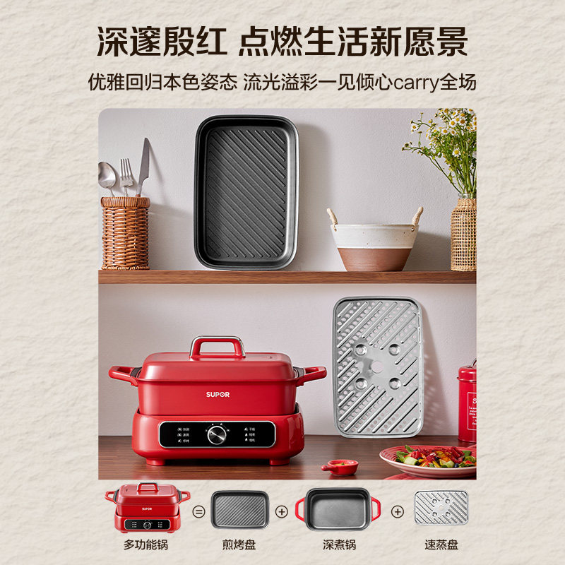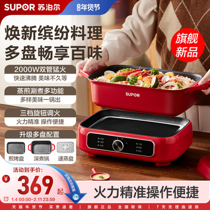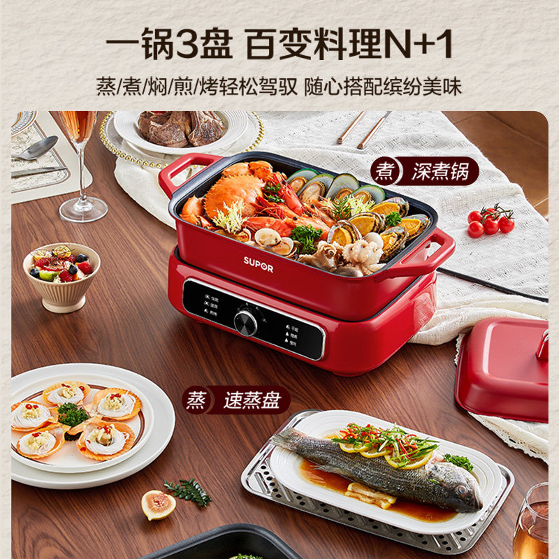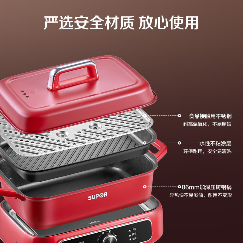 苏泊尔分体多功能料理锅家用分体电火锅烤肉煎烤涮一体电煮锅
