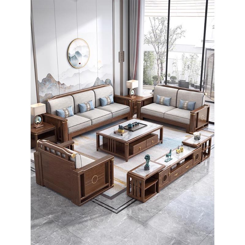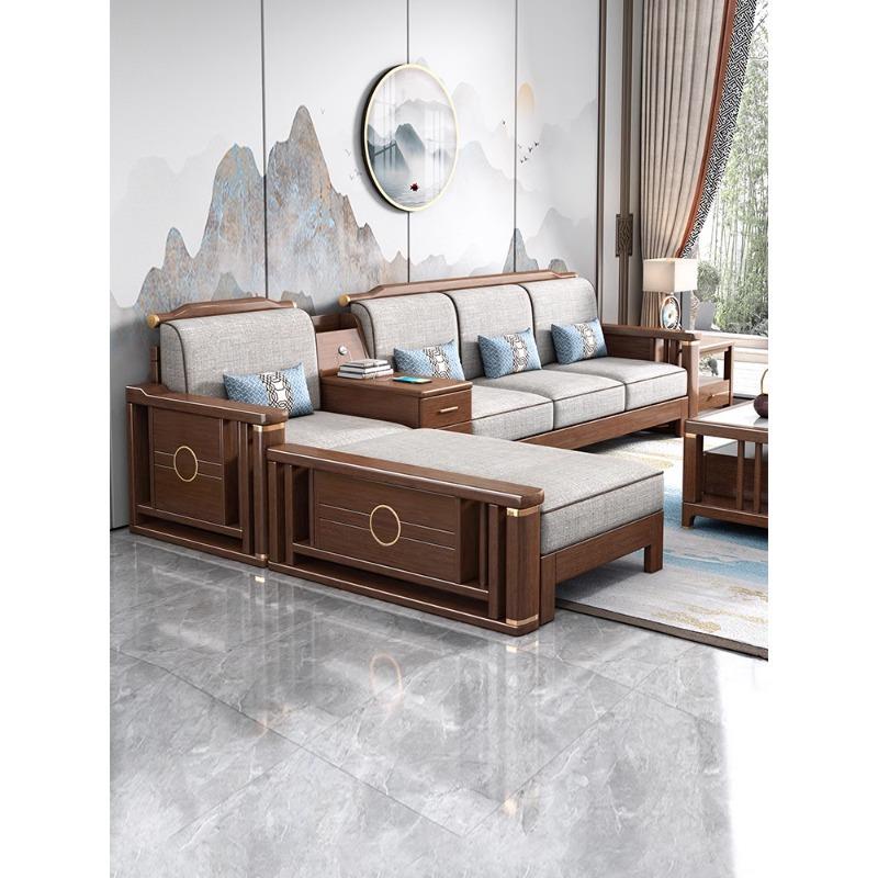 新中式实木沙发全实木现代简约客厅胡桃木家具小户型布艺贵妃组合