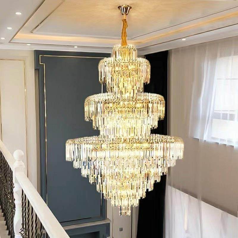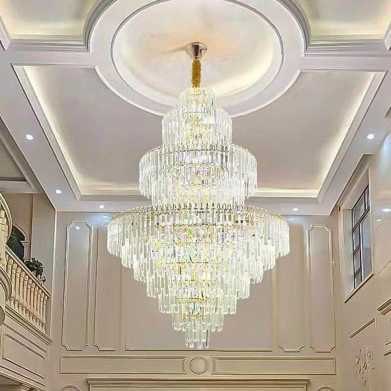 2023新款复式楼大吊灯现代水晶灯多层客厅别墅楼中楼酒店灯饰灯具