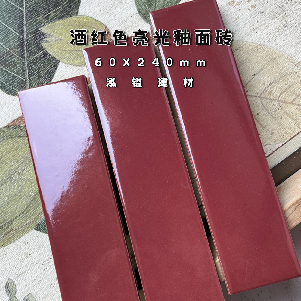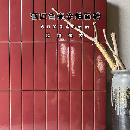 酒红色瓷砖条砖玫红色外墙砖餐饮店内墙瓷砖红色墙砖背景墙60*240