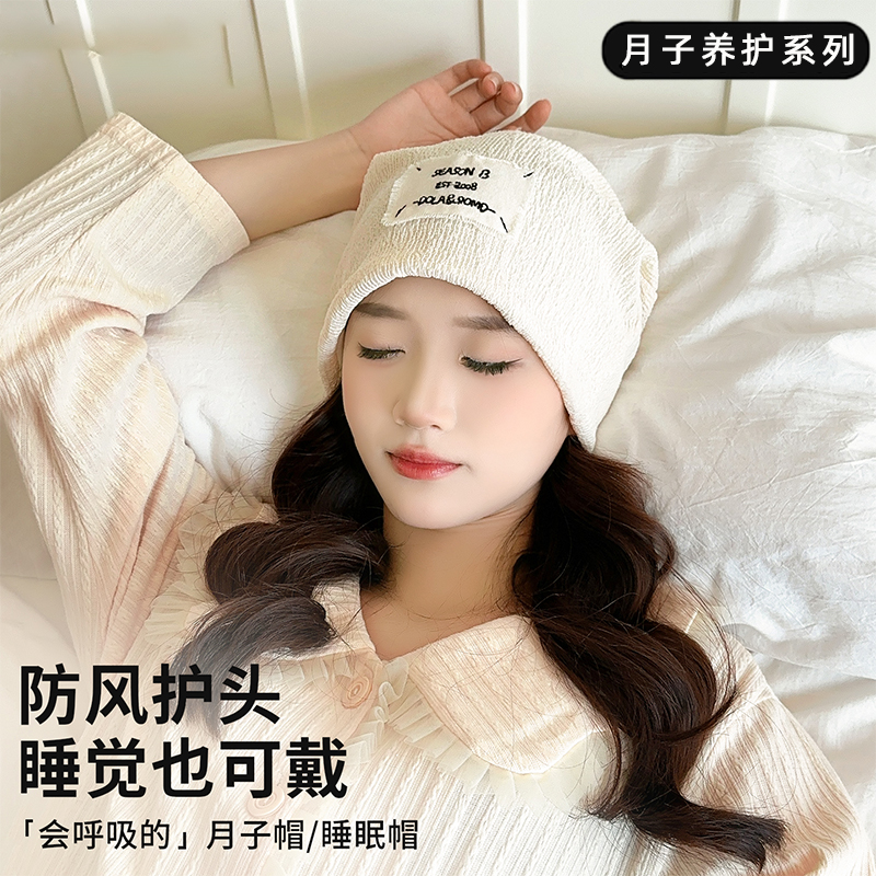 网红月子帽产妇产后春秋堆堆帽秋冬季帽子女针织毛线包头帽秋冬款