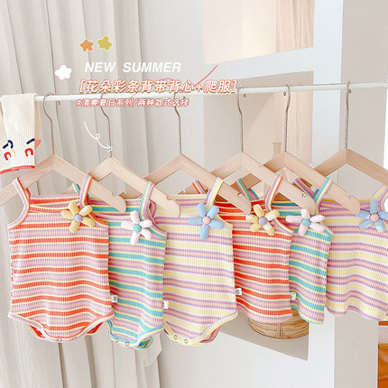 婴儿衣服夏装女宝宝吊带哈衣韩版可爱网红条纹连体衣新生儿包屁衣