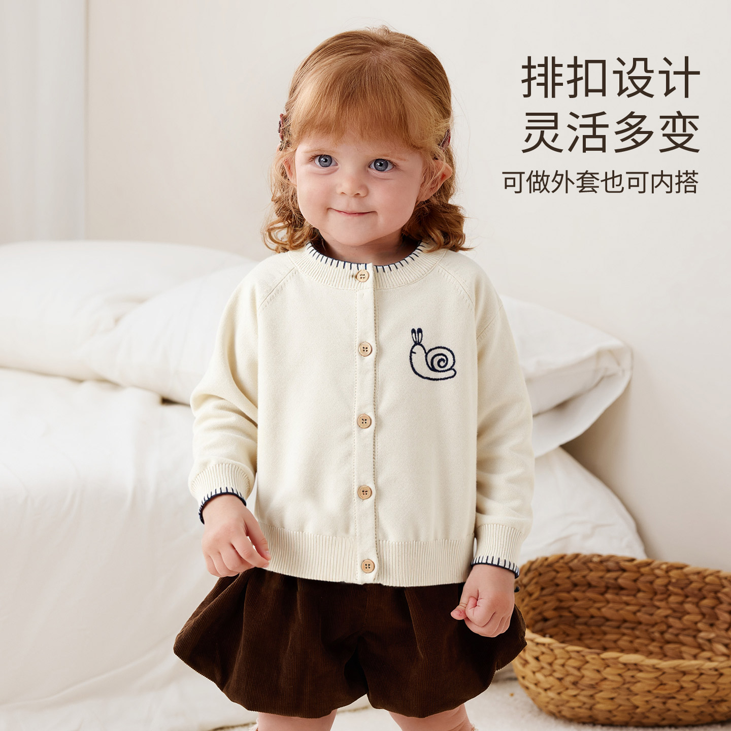 Oak mont宝宝毛衣外套婴儿针织衫抗起球秋装儿童开衫女童外搭上衣