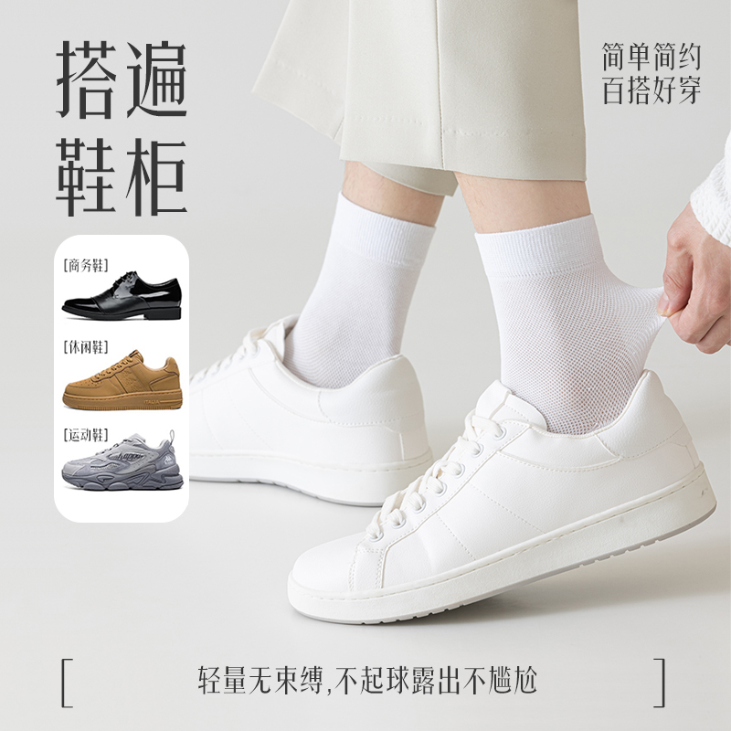 100%正品纯棉中筒袜子男春夏季薄款网眼透气吸汗不臭脚商务男短袜