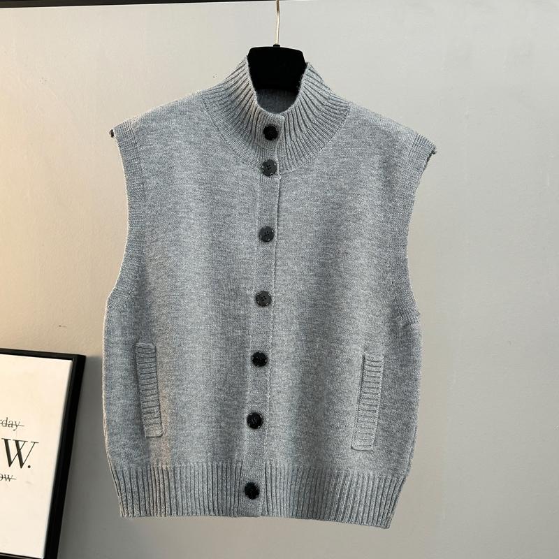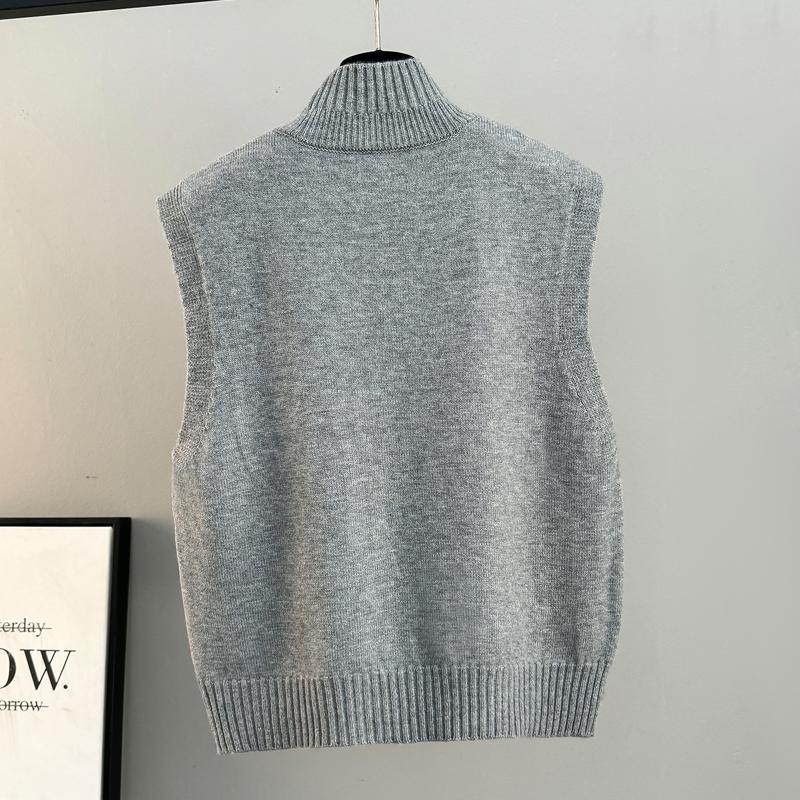 半高领排扣针织马甲宽松开衫背心