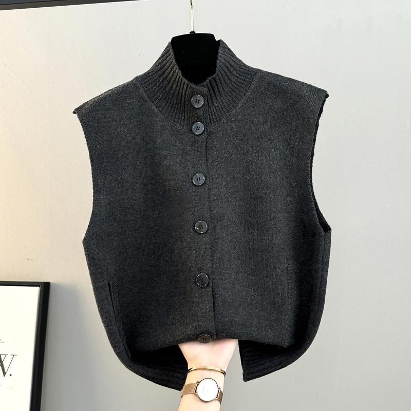 半高领排扣针织马甲女款2025秋冬季新款宽松外搭坎肩毛衣开衫背心