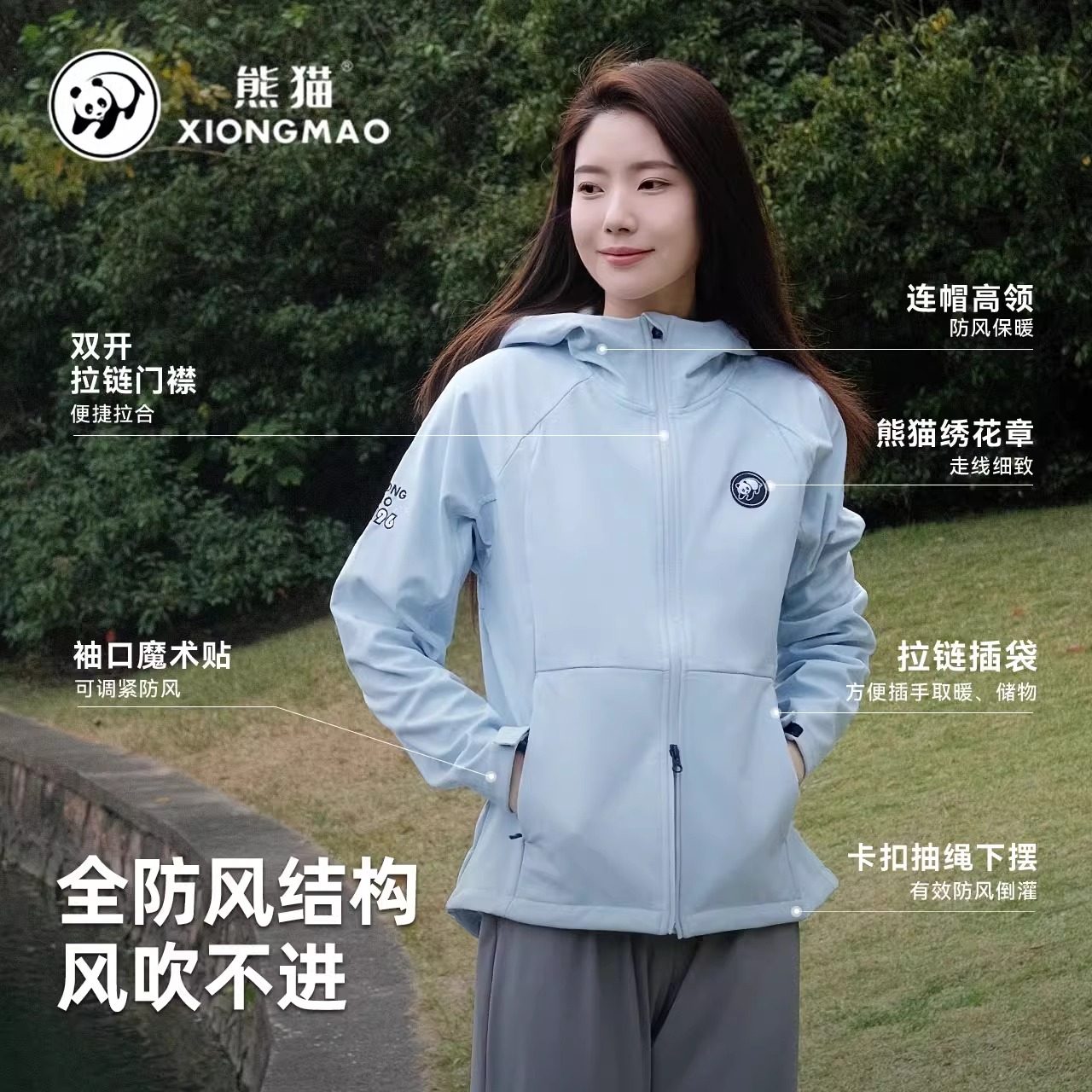 熊猫软壳衣女防泼水修身显瘦百搭