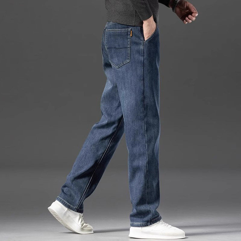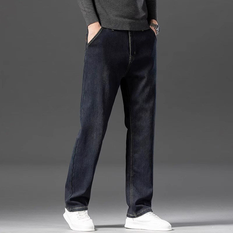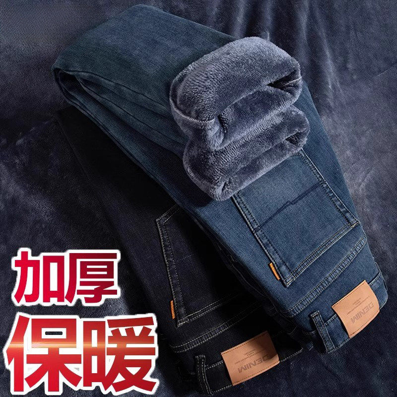 Yishion以纯官方时尚正品冬季加绒加厚牛仔裤男2025冬季宽松直筒