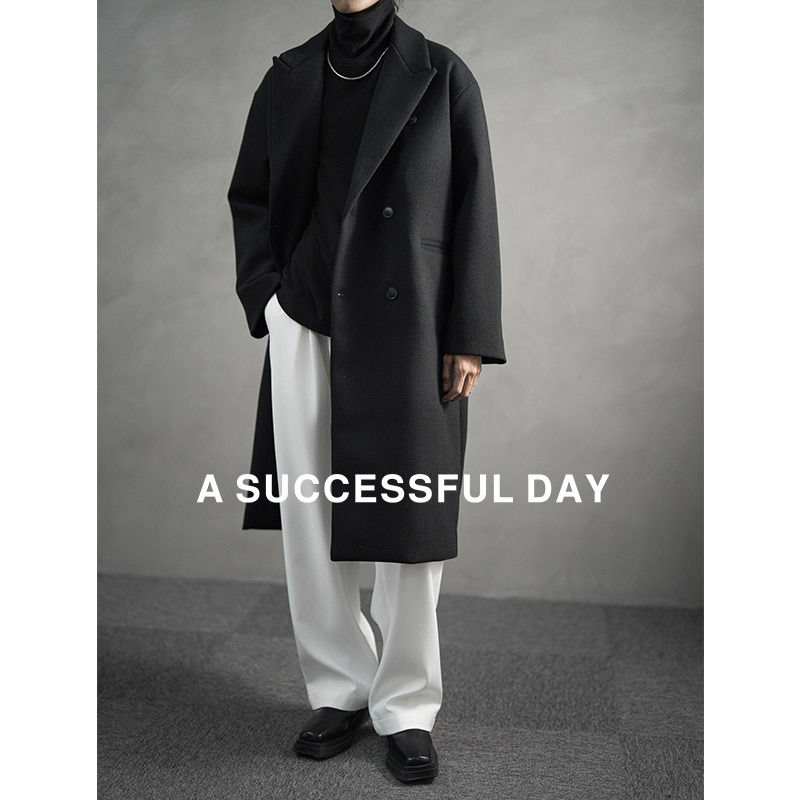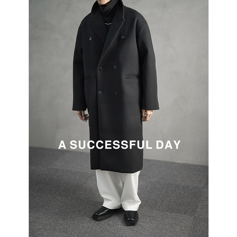 ASSDY|重磅高级排扣毛呢大衣男士2025冬季新款中长款加厚风衣外套