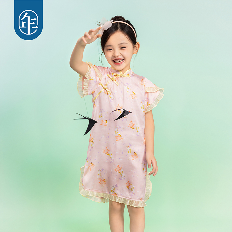 年衣童装女童改良旗袍连衣裙夏季新款儿童新中式表演服甜美连衣裙
