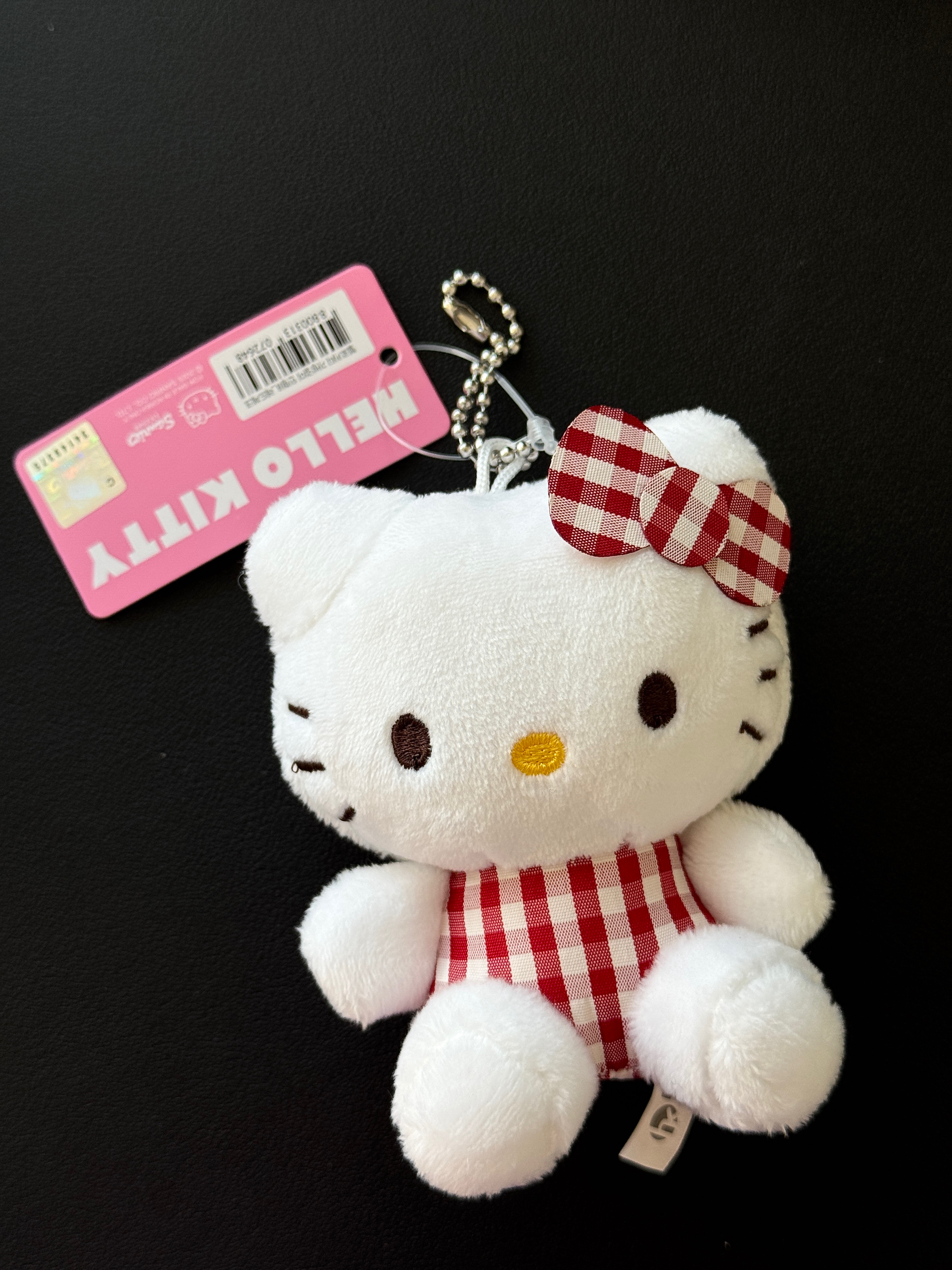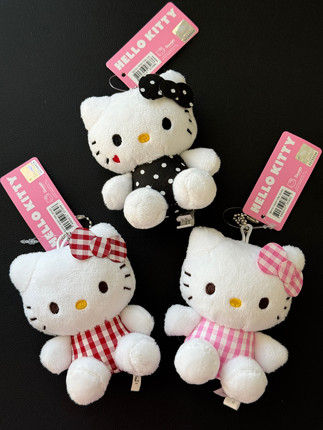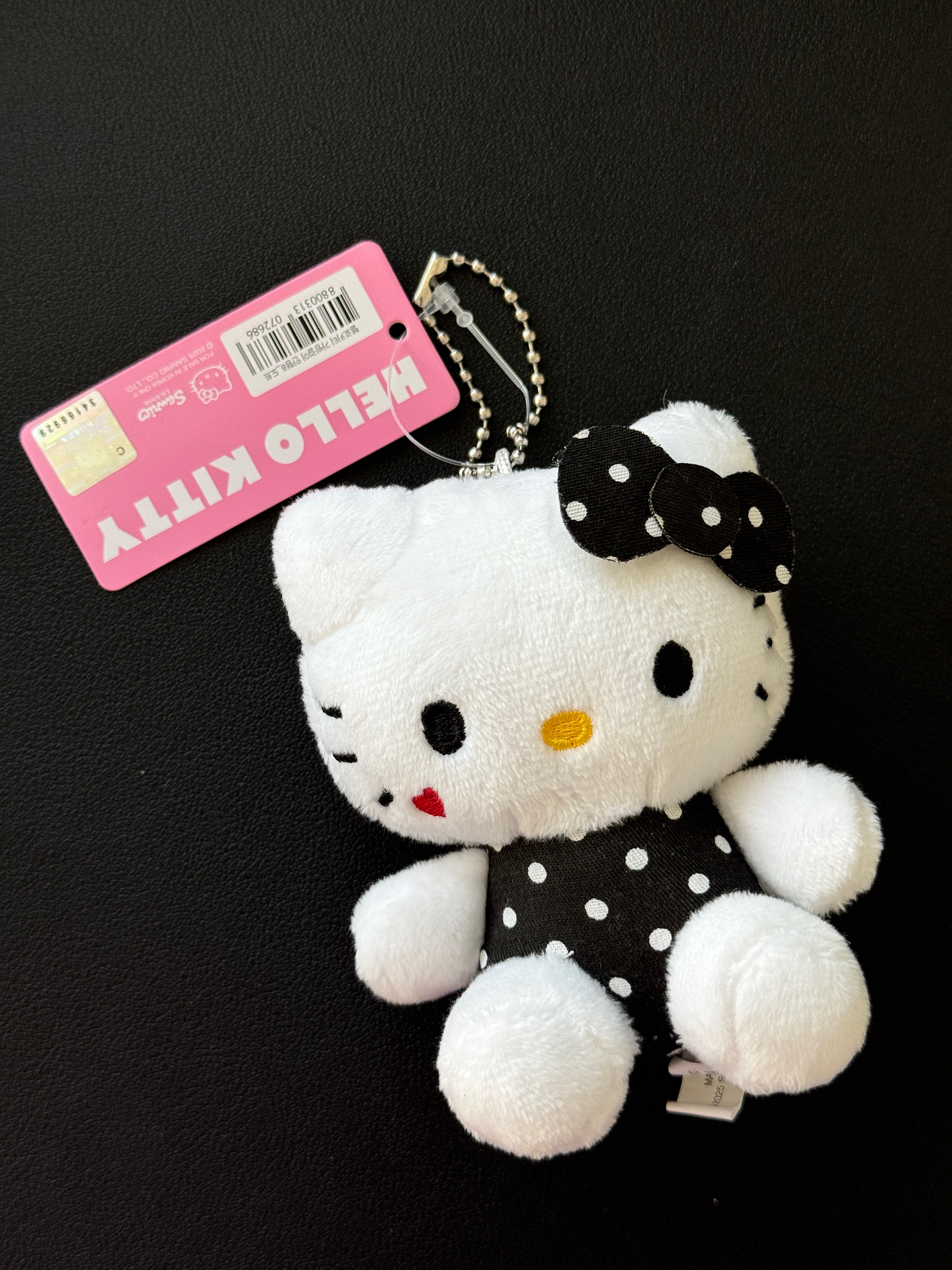 【现货秒发】韩版正品三丽鸥hellokitty黑色波点格纹毛绒挂件