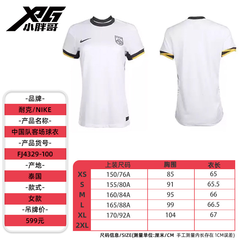 小胖哥XPG耐克24-25中国队客场球迷版球衣运动休闲比赛女足足球服