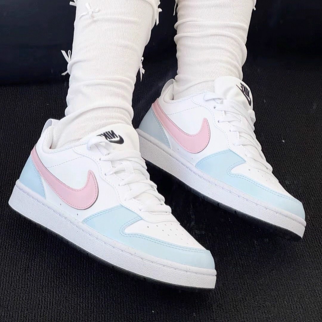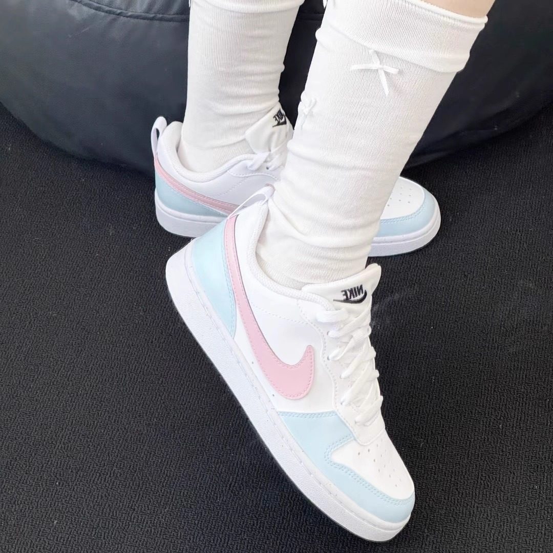球鞋定制 Nike Court Borough 海盐桃桃小清新白蓝粉女子低帮板鞋