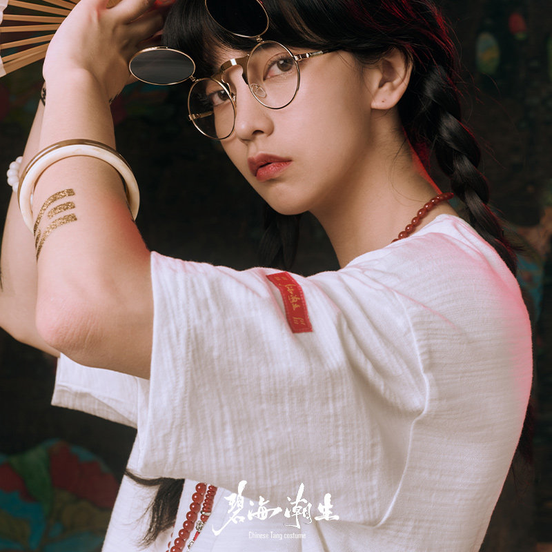 碧海潮生竹节棉盘扣刺绣宽松短袖