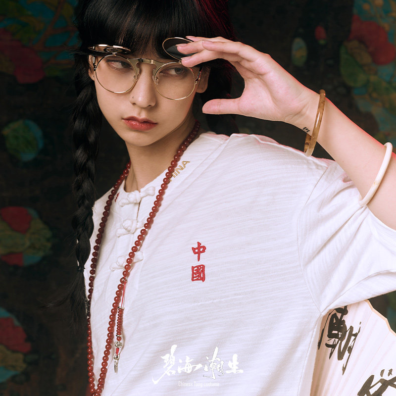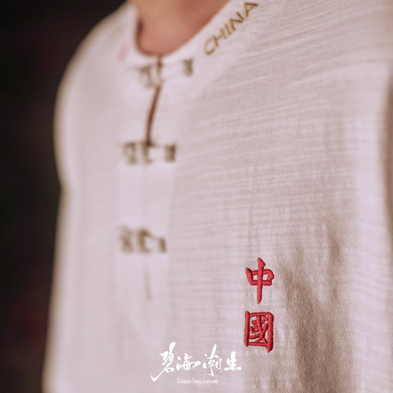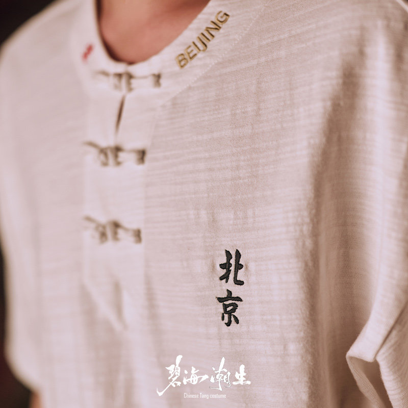 碧海潮生<城市限定>新款中国风竹节棉盘扣刺绣宽松短袖t恤1-24