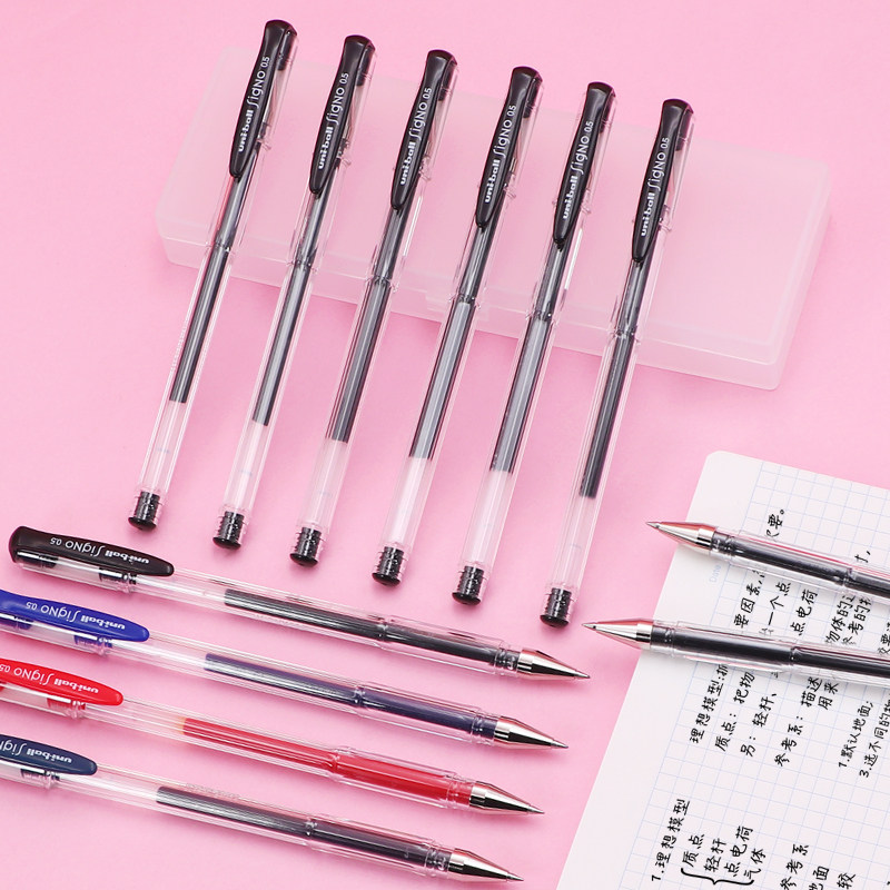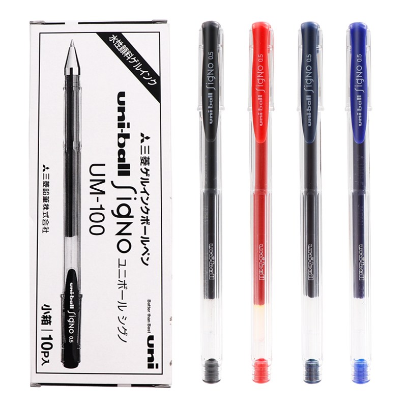 日本进口uniball 笔三菱UM-100中性笔学生用考试三棱UM100笔芯黑色墨蓝色水笔0.5mm多支装盒装文具用品