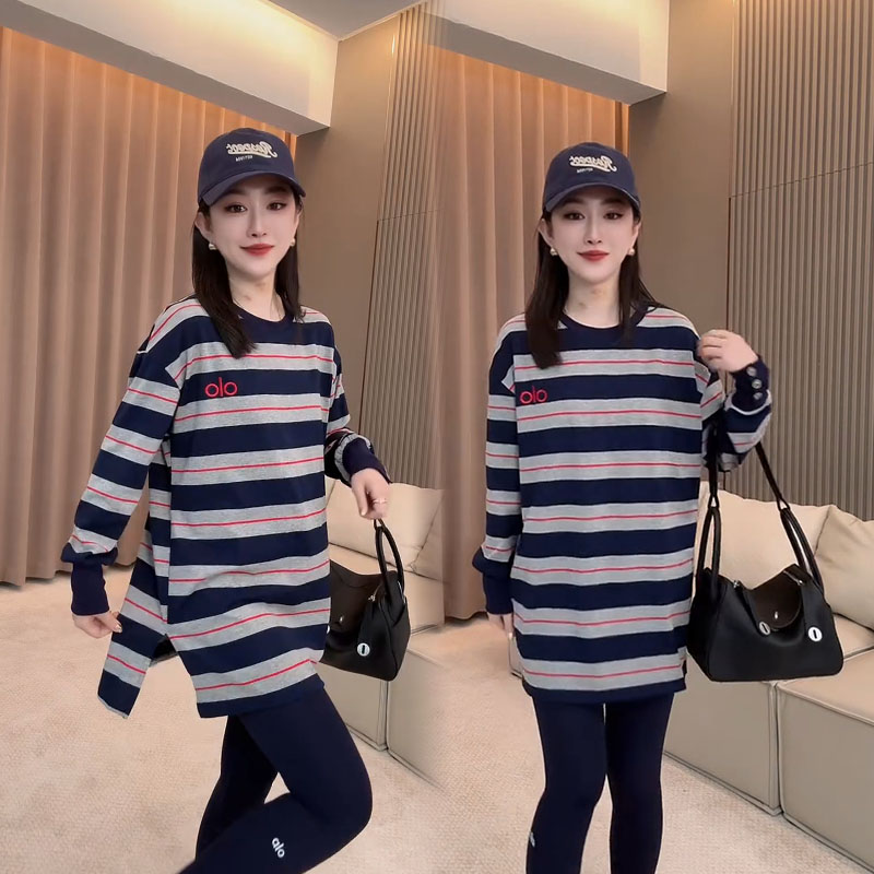 2025秋季新款韩系穿搭宽条纹长袖卫衣宽松休闲显瘦百搭中长款上衣