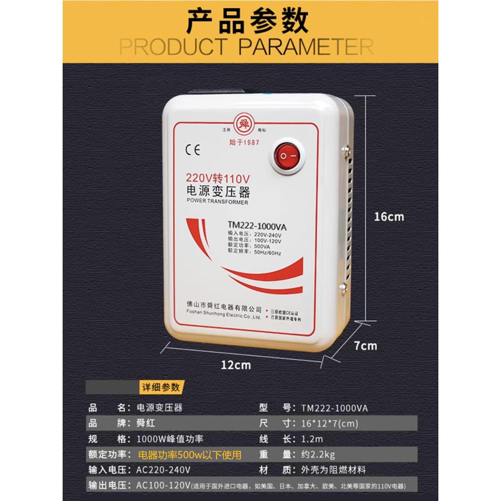 舜红1000W变压器220V转110V/110V转220V美小家电电源电压转换器