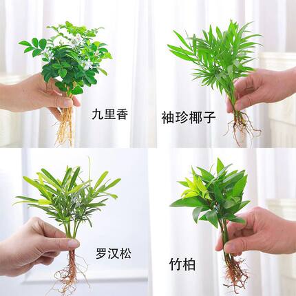 DIY小绿植罗汉松袖珍椰子绿萝竹柏九里香网纹草盆栽水培植物小苗
