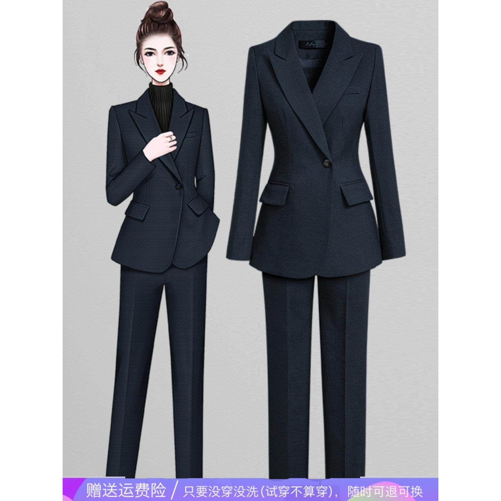 一粒扣职业西装套装秋冬气质修身厚款高端西服工作服职场通勤工装