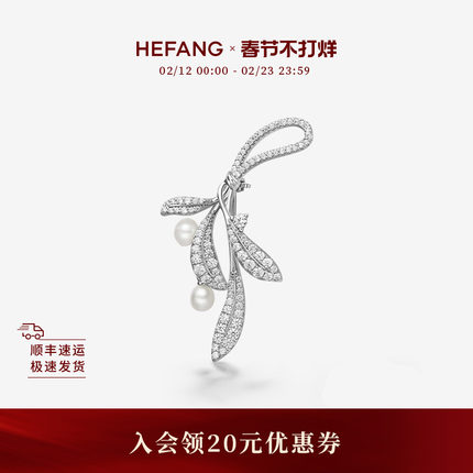 [新品]HEFANG何方珠宝月桂叶珍珠胸针配饰轻奢优雅生日礼物