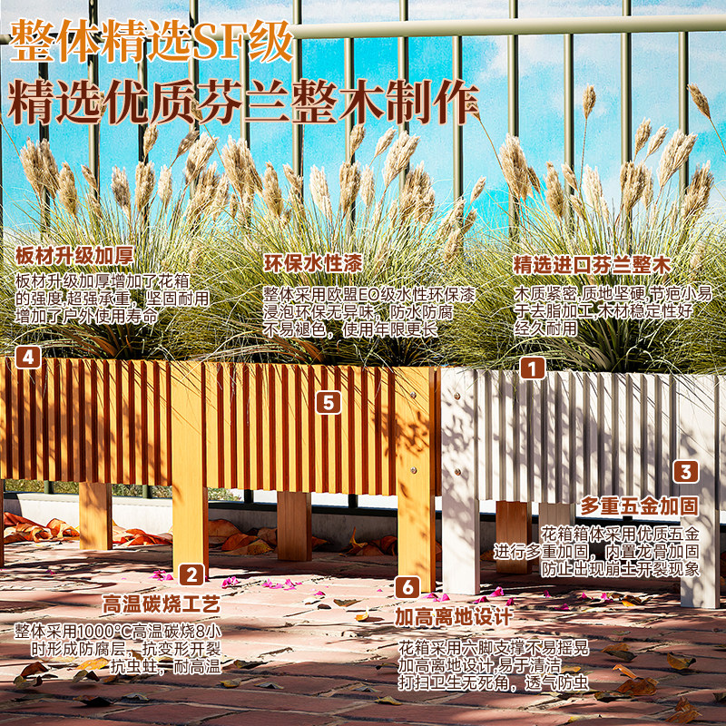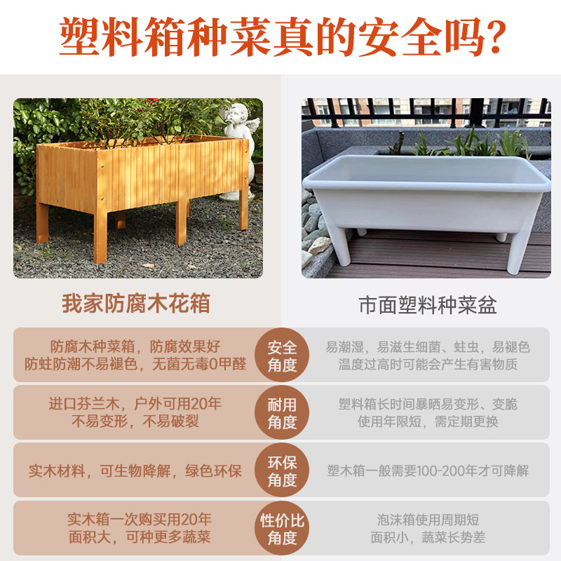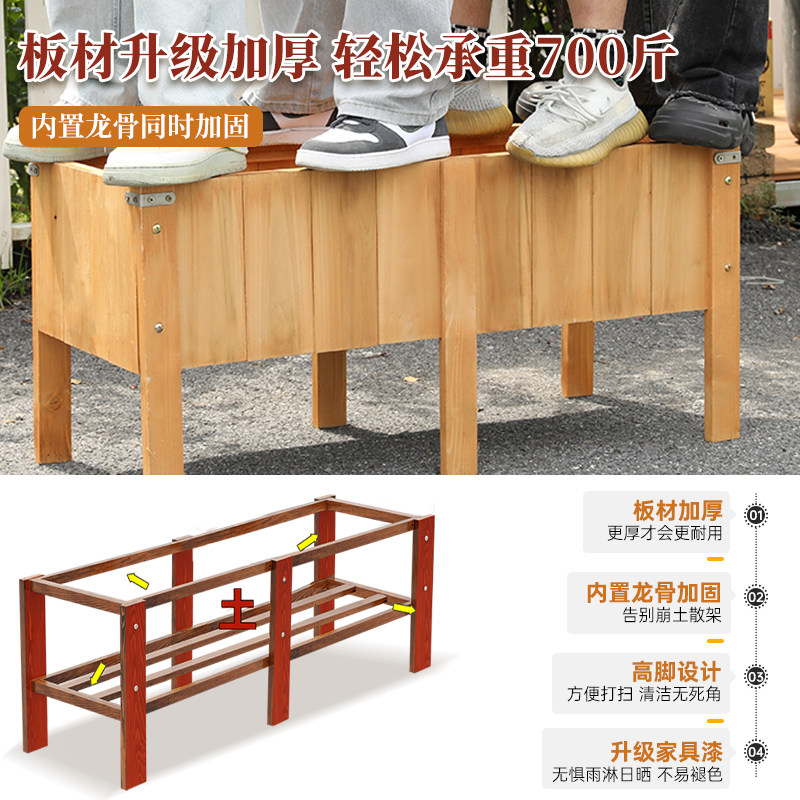 防腐木花箱阳台种菜盆长方形种植箱户外高脚花盆槽楼顶蔬菜专用箱