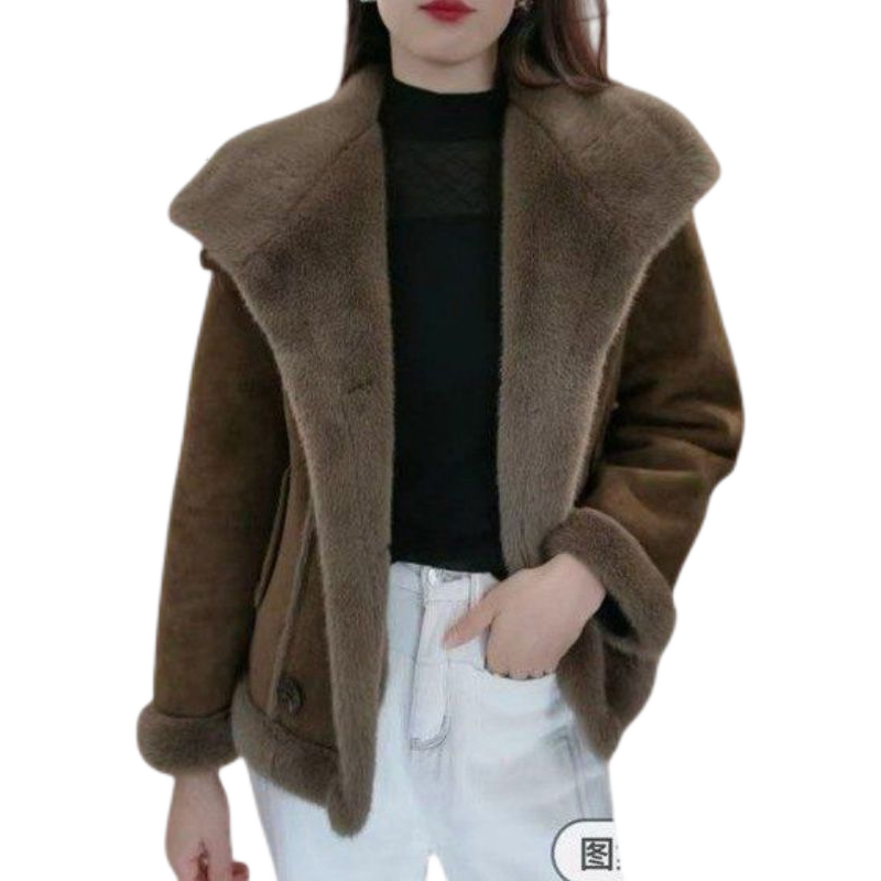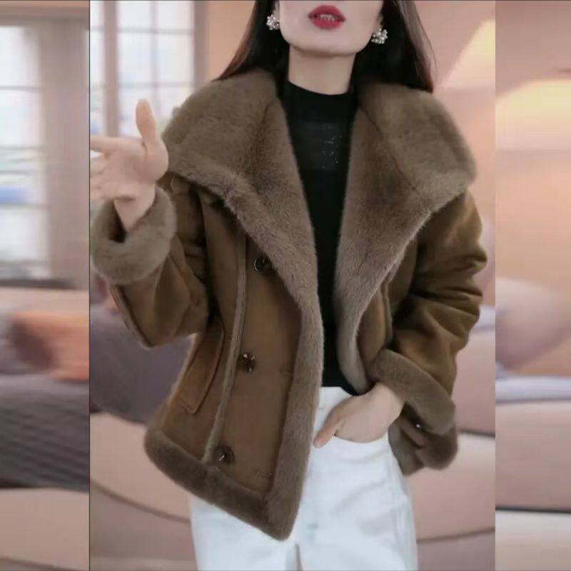 女士冬季加绒保暖外套皮毛一体加厚棉衣外套妈妈冬装时尚洋气棉袄