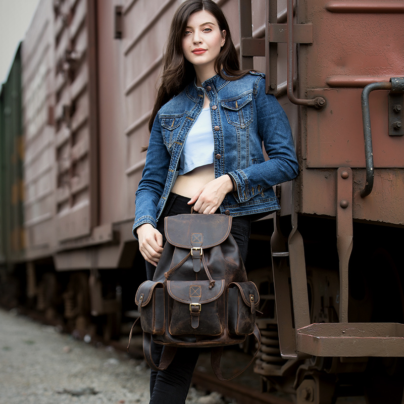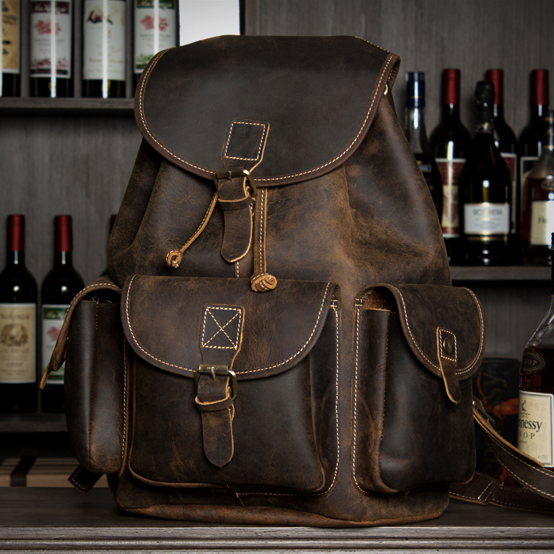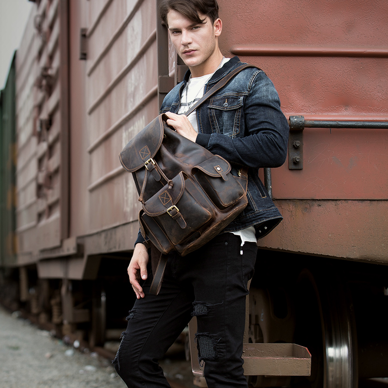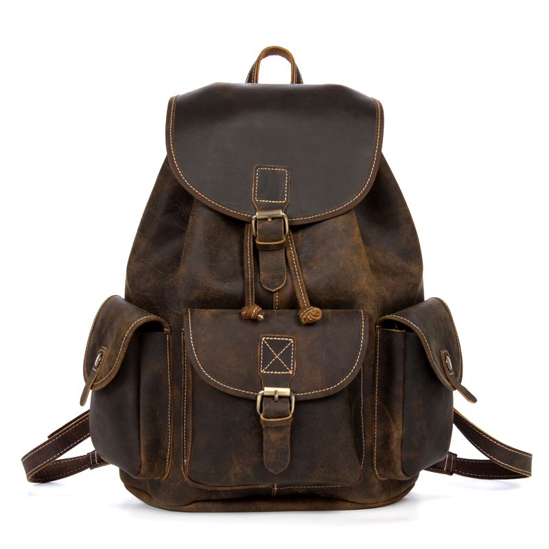 复古潮手工牛皮背包男士真皮双肩包皮书包女户外旅行背包电脑包
