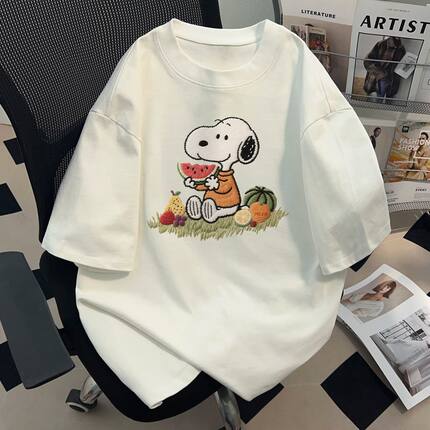 重磅纯棉美式街头史努比印花短袖T恤情侣装潮流ins休闲夏季上衣男
