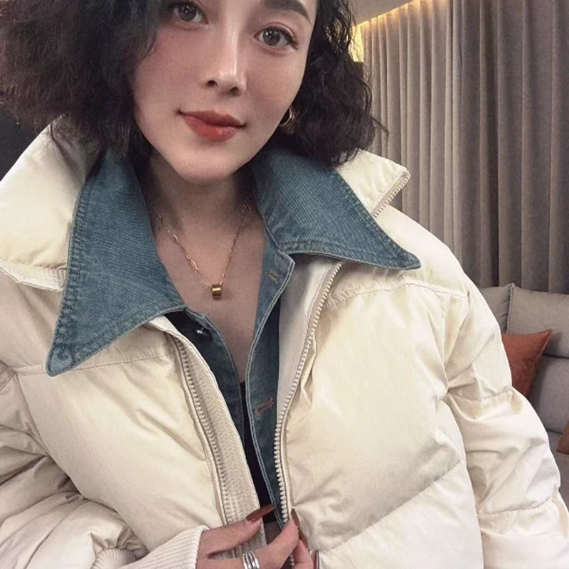 高级感假两件牛仔领棉服女2025冬季新款设计宽松百搭棉衣遮肉外套
