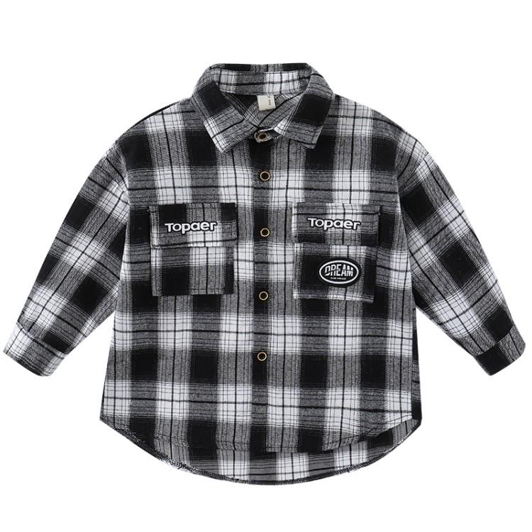 男童纯棉格子长袖春装衬衫2025新款中大童衬衣儿童上衣春秋外套潮