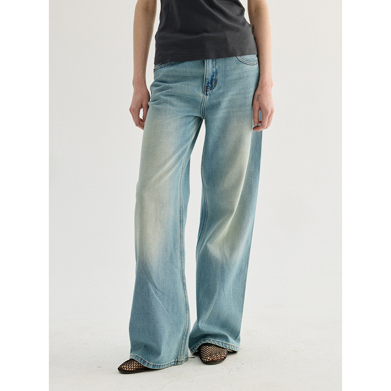 THEMIND浅蓝色牛仔裤女2025十三行韩版休闲长裤子NY028高腰设计