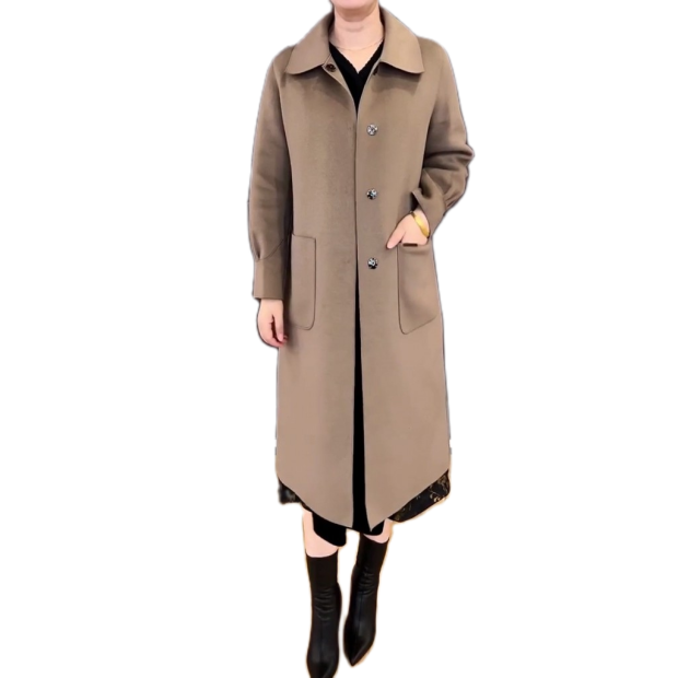 高端双面羊绒大衣翻领风衣外套