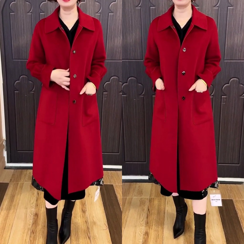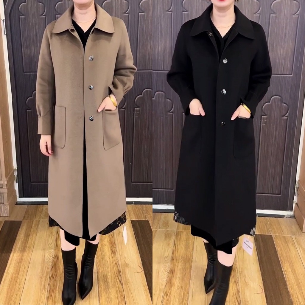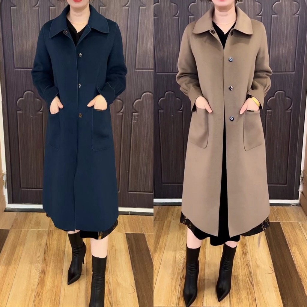 高端双面羊绒大衣2025秋冬新款翻领中年女装妈妈装中长款风衣外套