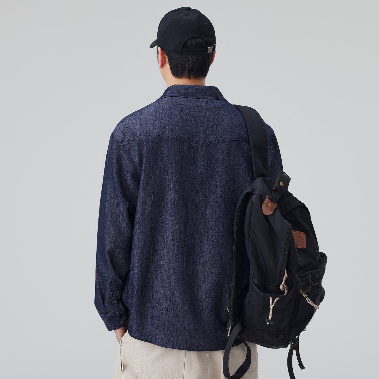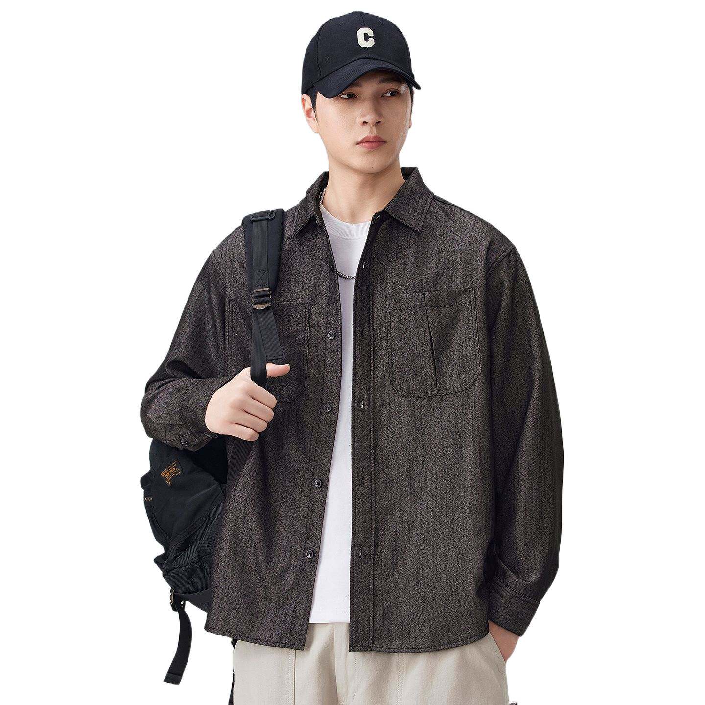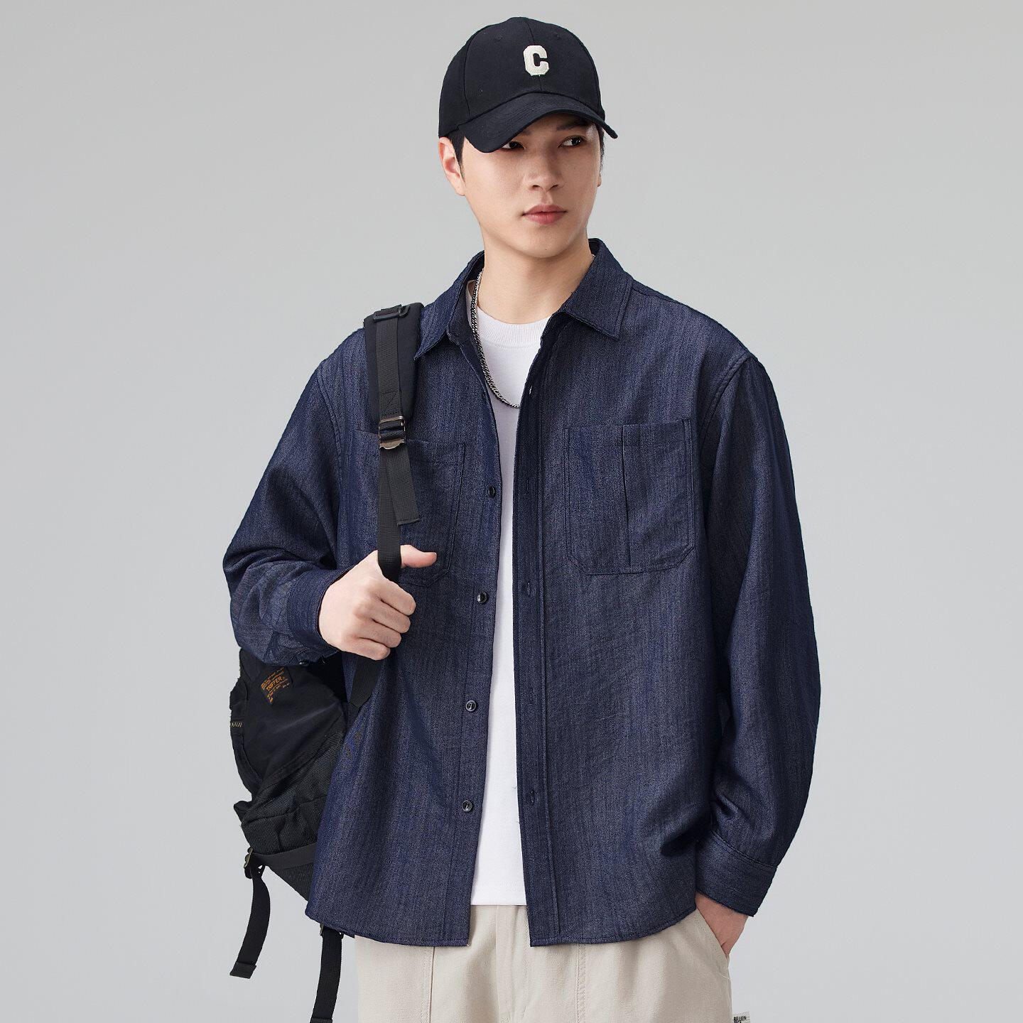 美式重磅仿牛仔衬衫男士长袖