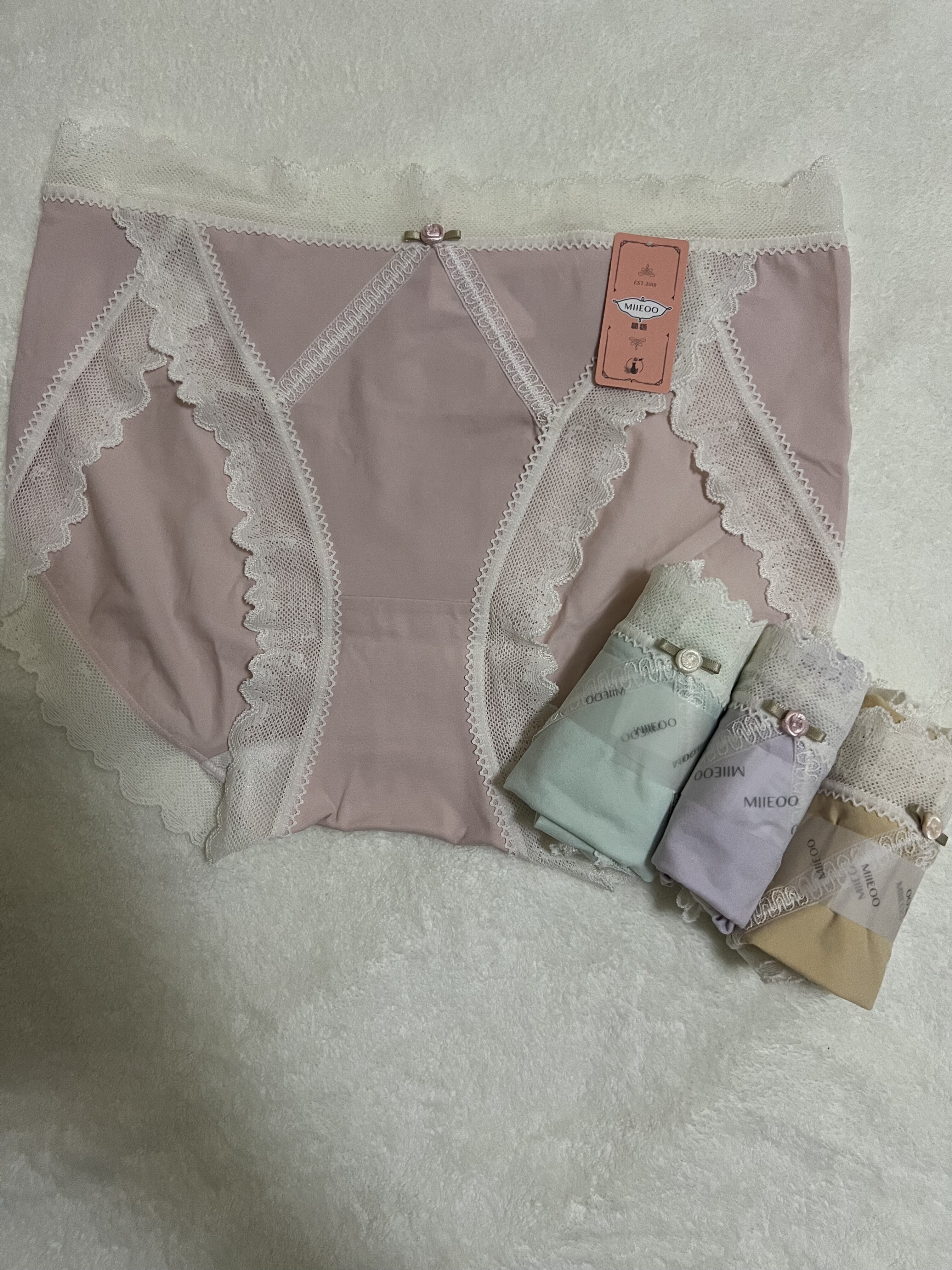 秘语女士内裤香草马卡龙薄款无痕蕾丝边中腰高开叉三角短裤62059