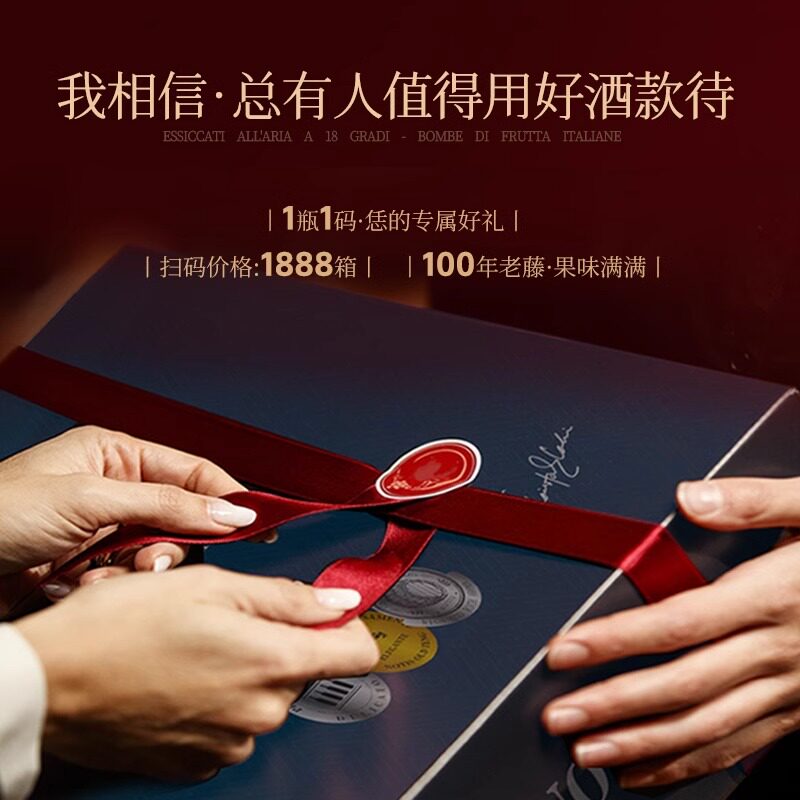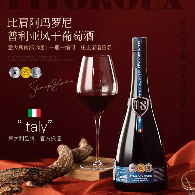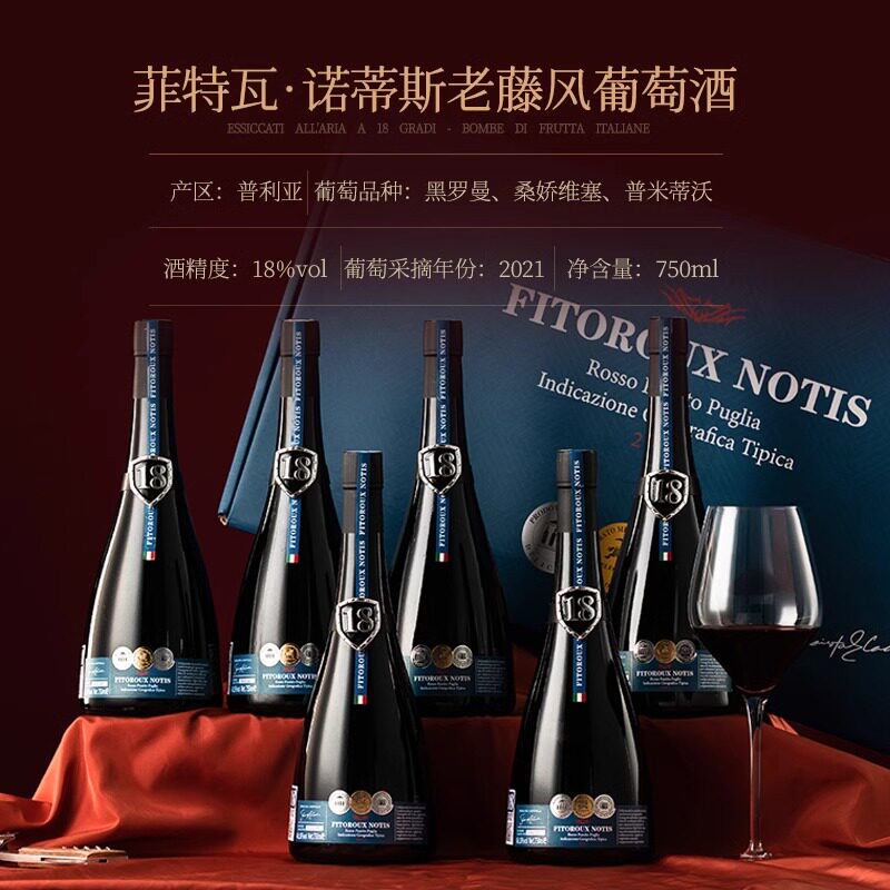 【自营】意大利老藤风干18度进口红酒干红葡萄酒整箱礼盒装餐酒