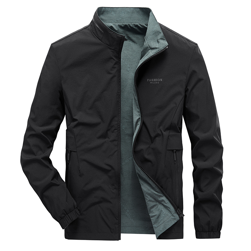 双面穿夹克男春秋上衣中年商务休闲宽松大码百搭运动立领两面外套