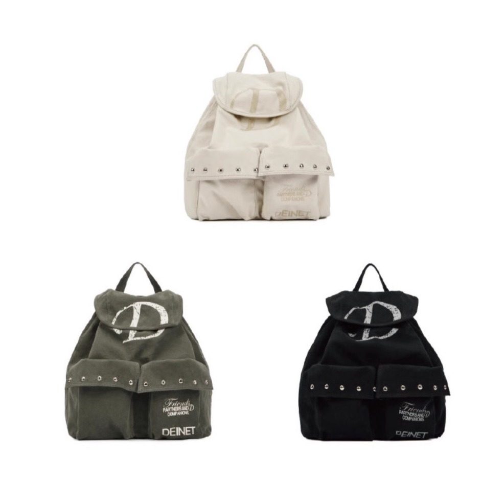 韩国小众品牌Deinet双肩包D字母大号抽绳口袋铆钉帆布背包女
