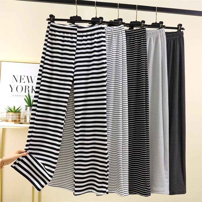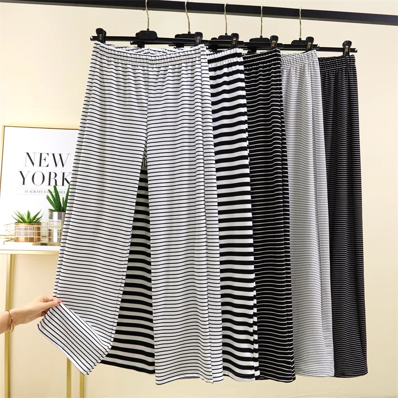 妈妈装德绒条纹休闲裤女秋冬高腰长裤家居裤睡裤加绒阔腿裤中老年