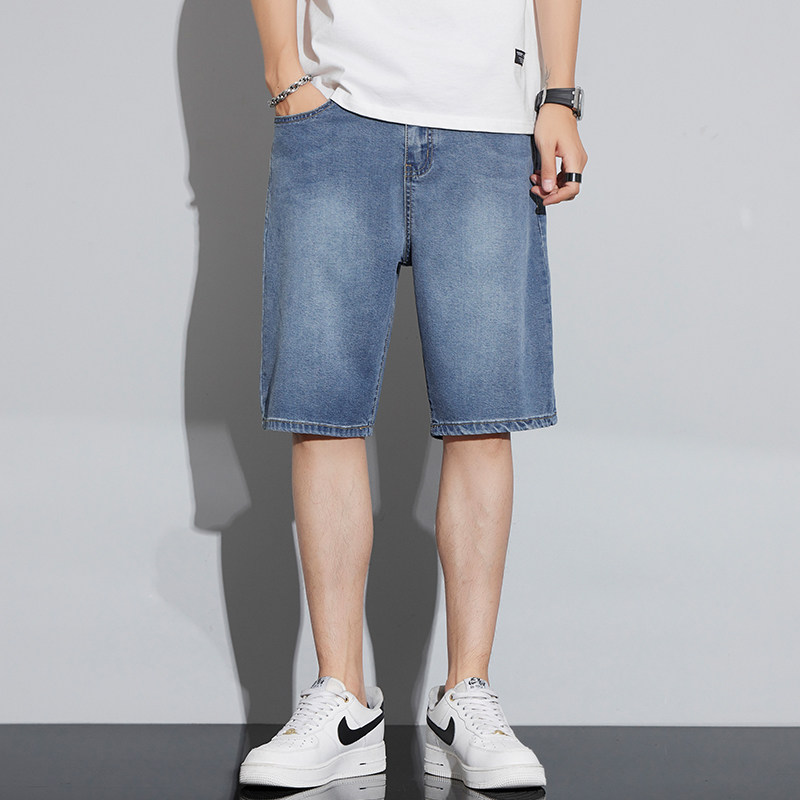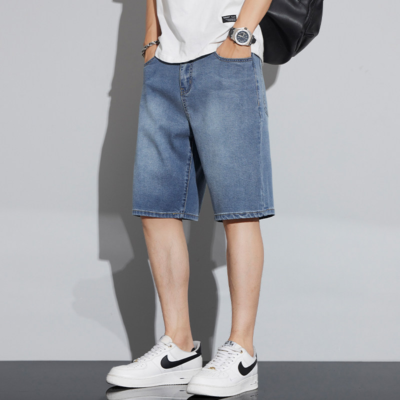 夏季超薄天丝牛仔短裤男士2024新款莱赛尔冰丝休闲宽松五分中裤子