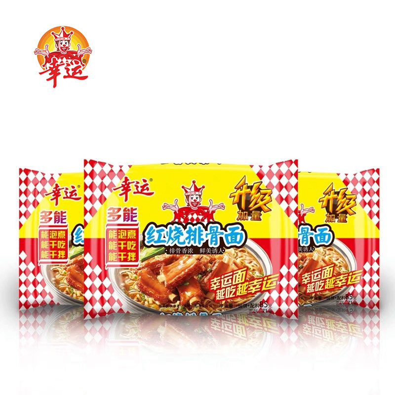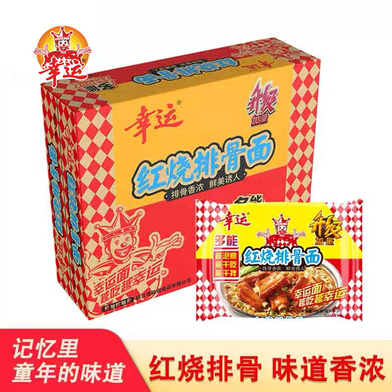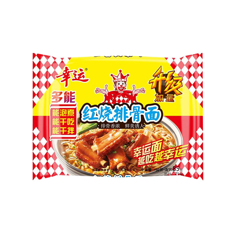 幸运方便面红烧排骨面干吃干脆面煮面泡面含油包85g袋装整箱