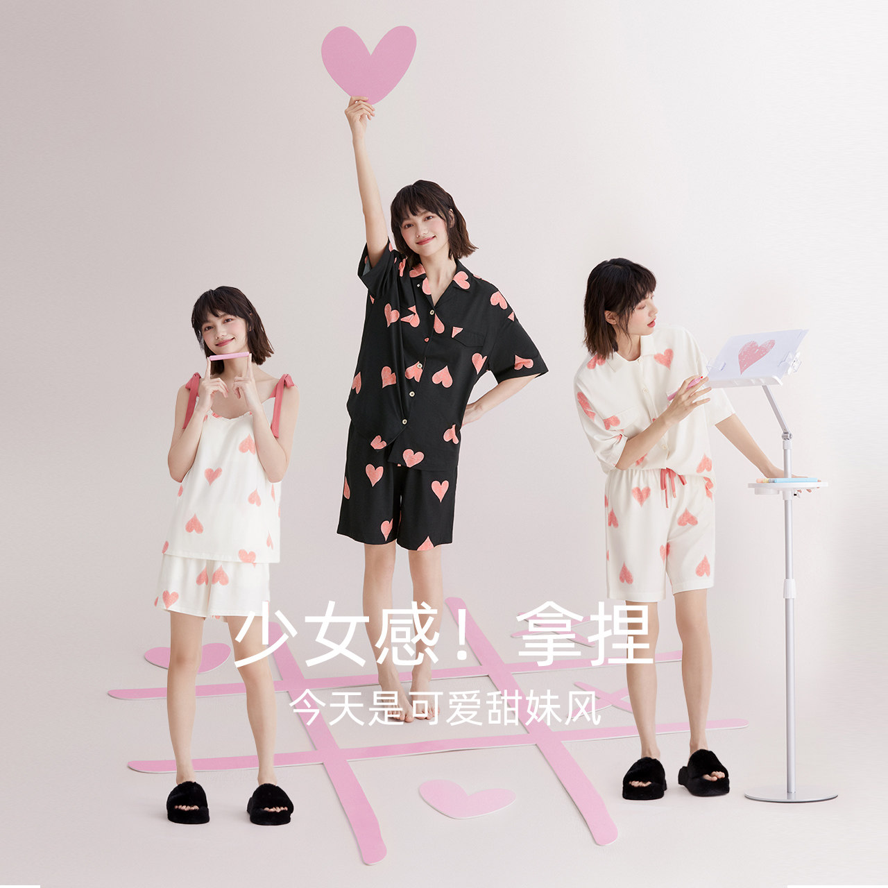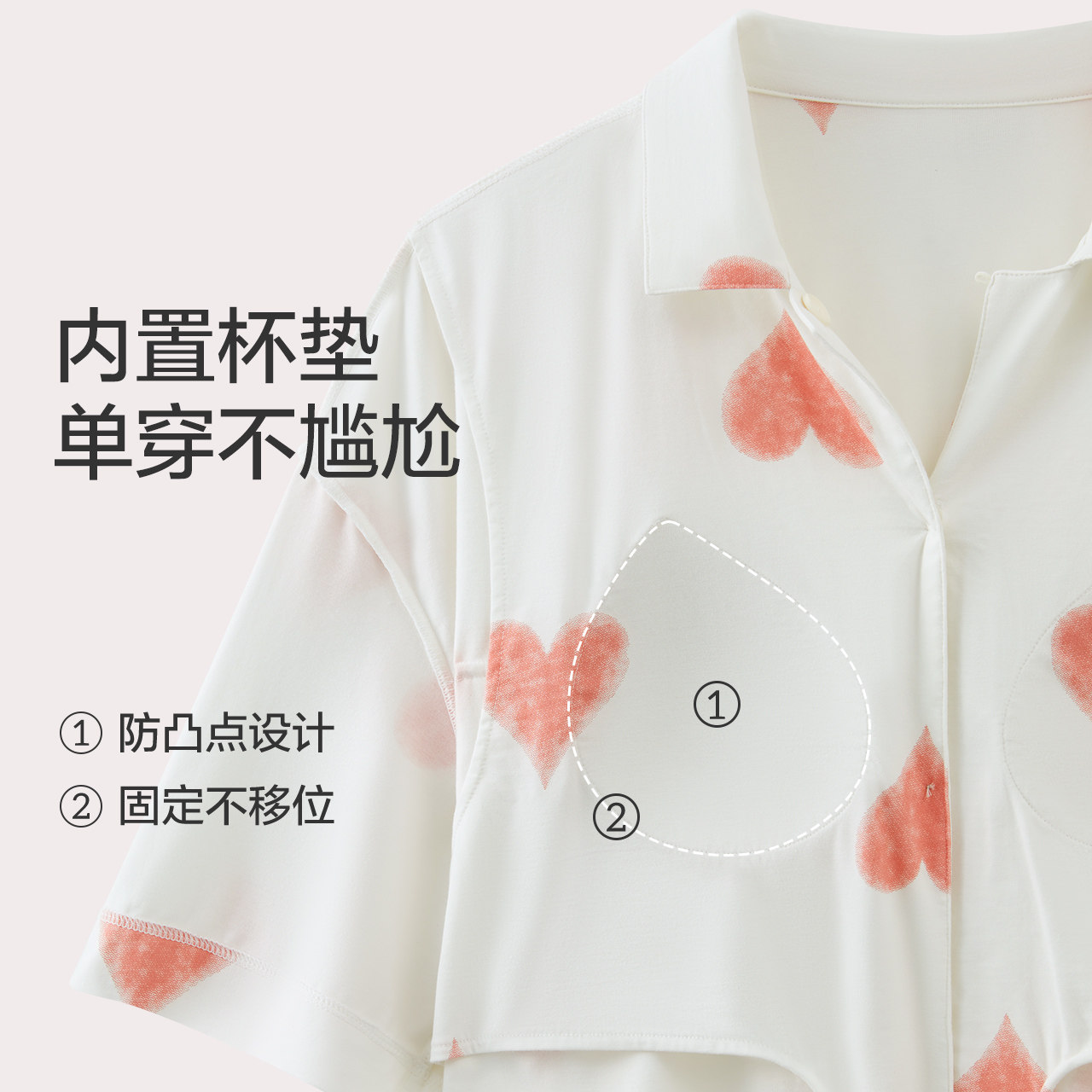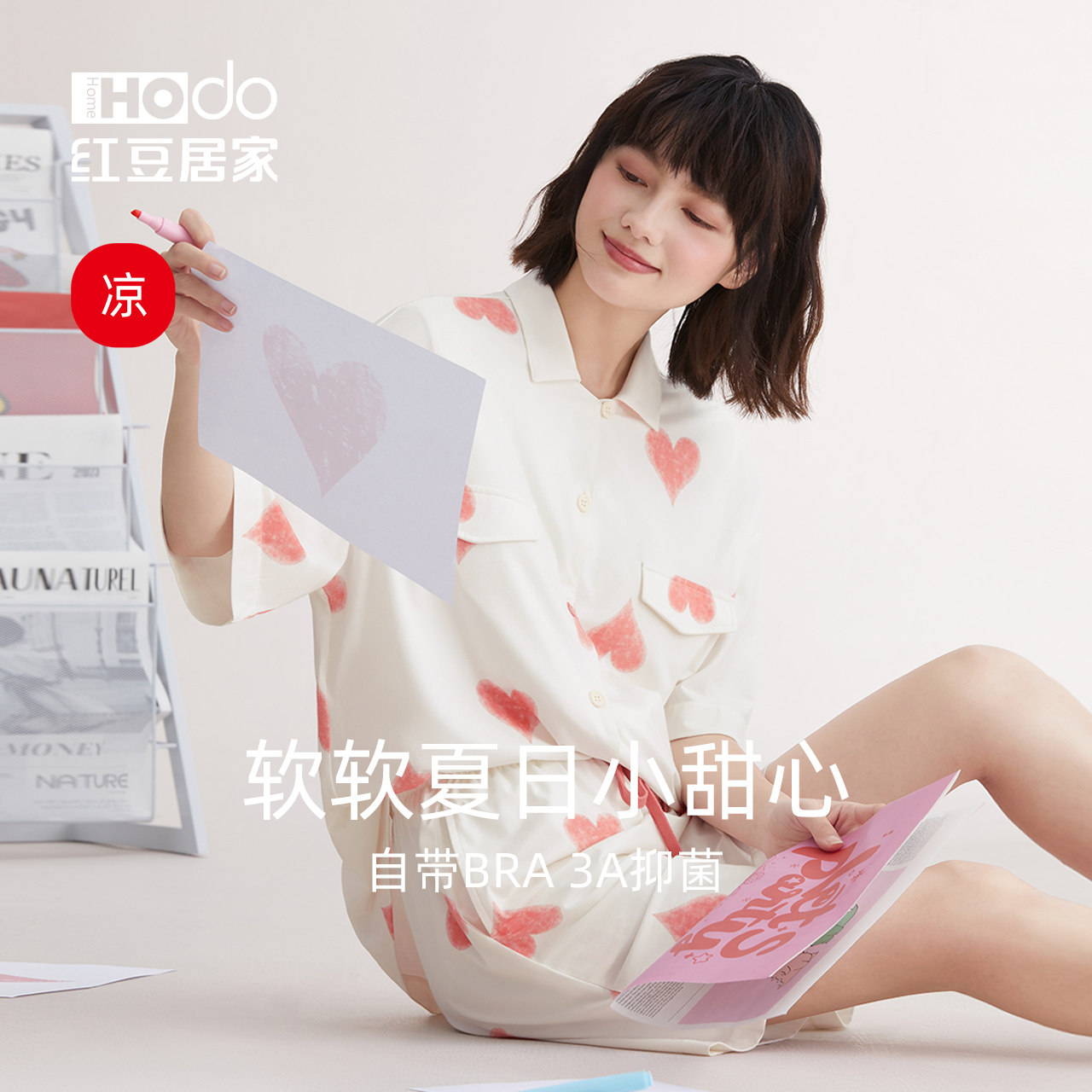 红豆凉感莫代尔短袖睡衣女带胸垫抑菌夏天吊带短裤薄款家居服套装