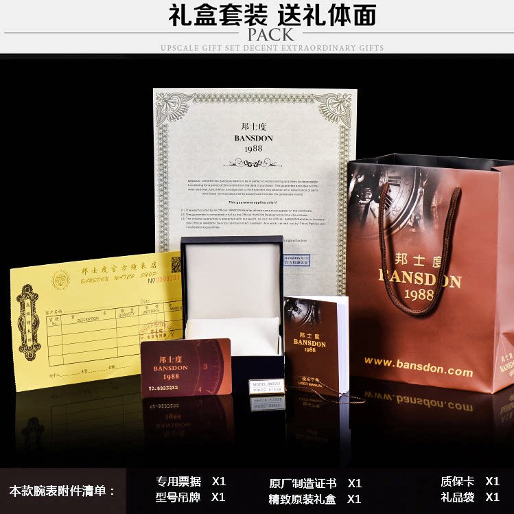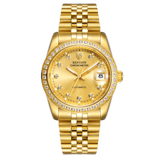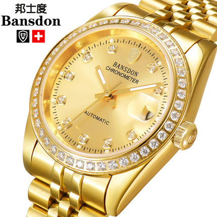 瑞士新款邦士度男士全自动机械手表防水休闲镂空镶钻日历18k金表