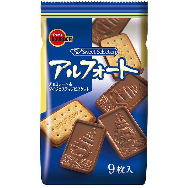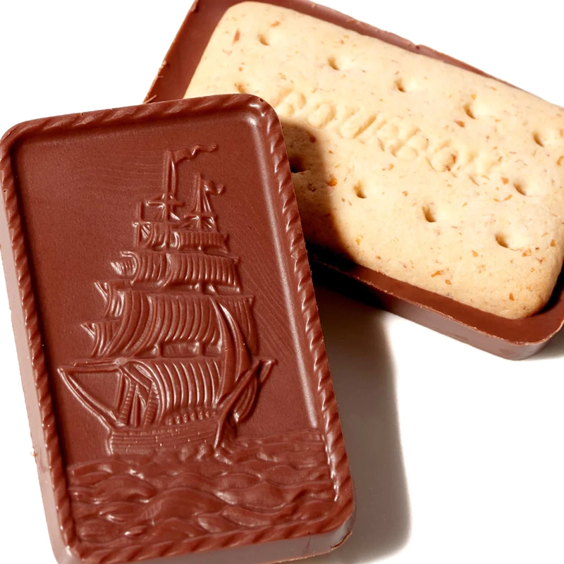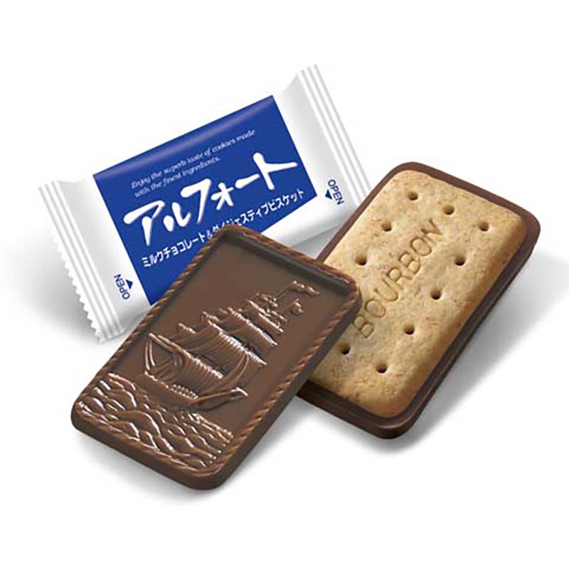 日本零食 BOURBON布尔本全麦消化半涂牛奶巧克力船型图案饼干10枚