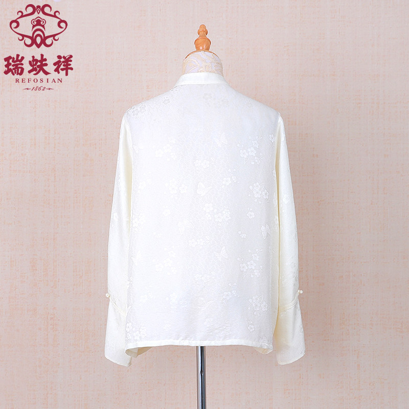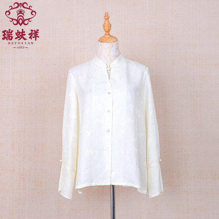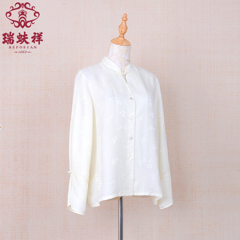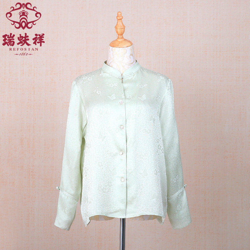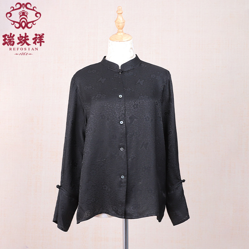 瑞蚨祥新中式长袖小衫桑蚕丝唐装茶服盘扣立领衬衫上衣禅意女装