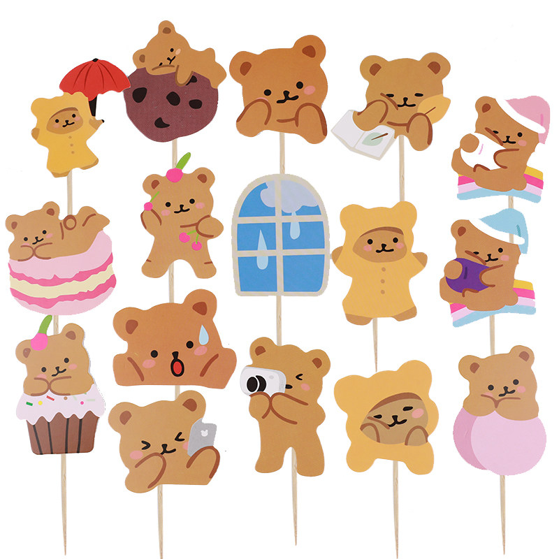 韩国ins小熊蛋糕装饰插牌 生日派对儿童节纸杯布置烘焙插件装扮