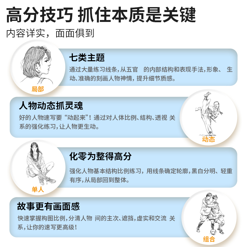 人物速写描摹本4册素描速写临摹本 速写入门教程 人体速写自学零基础艺考培训教材人物绘画描摹画册