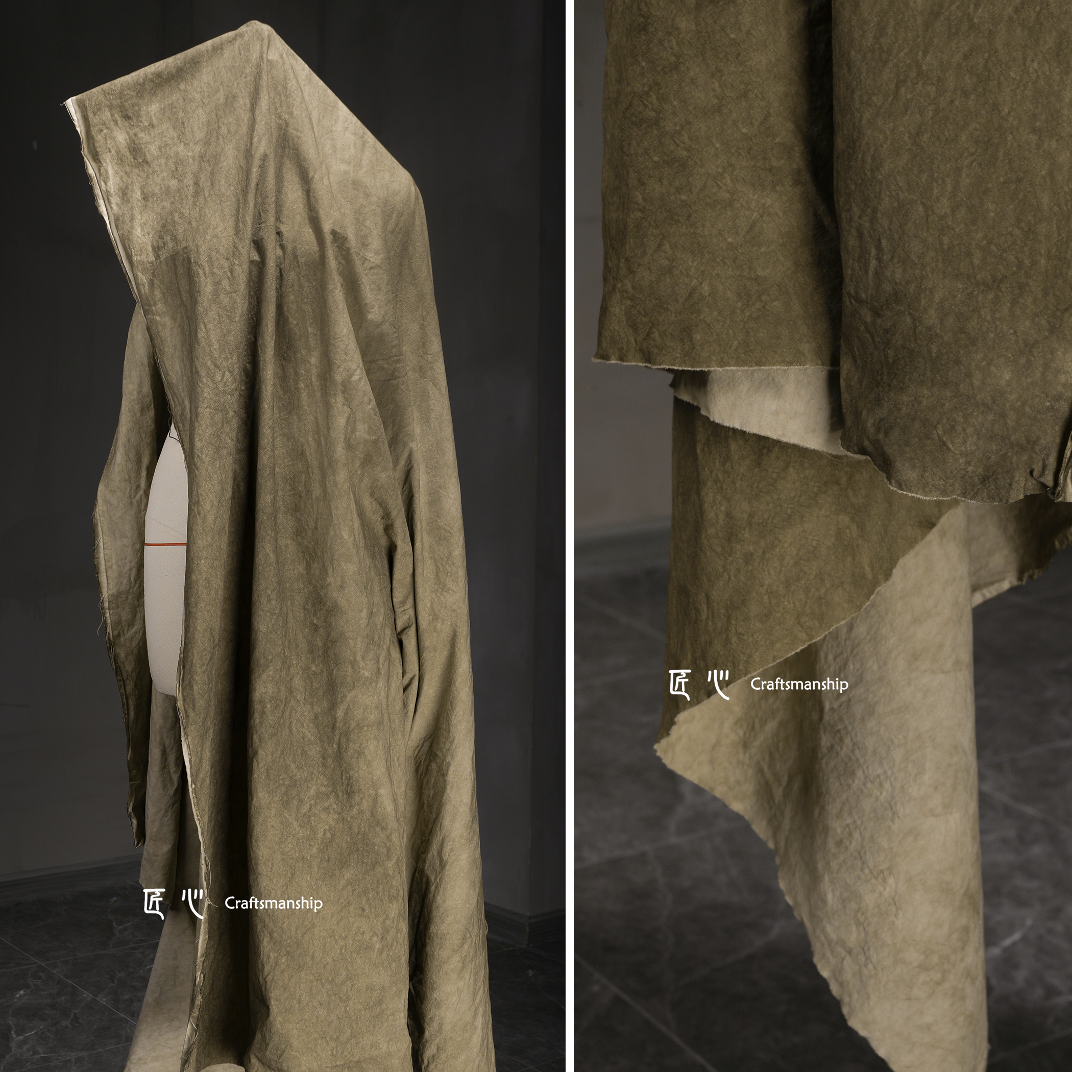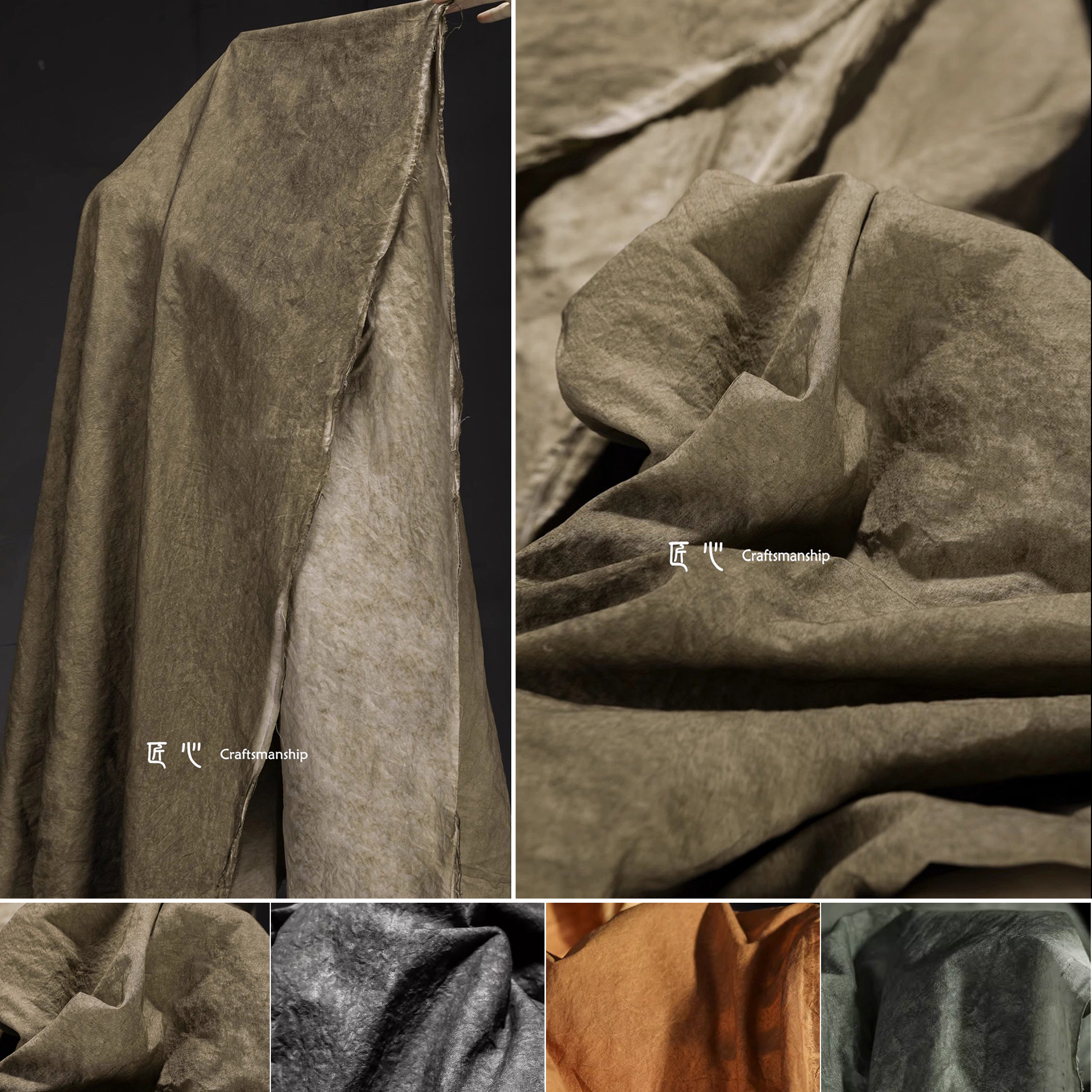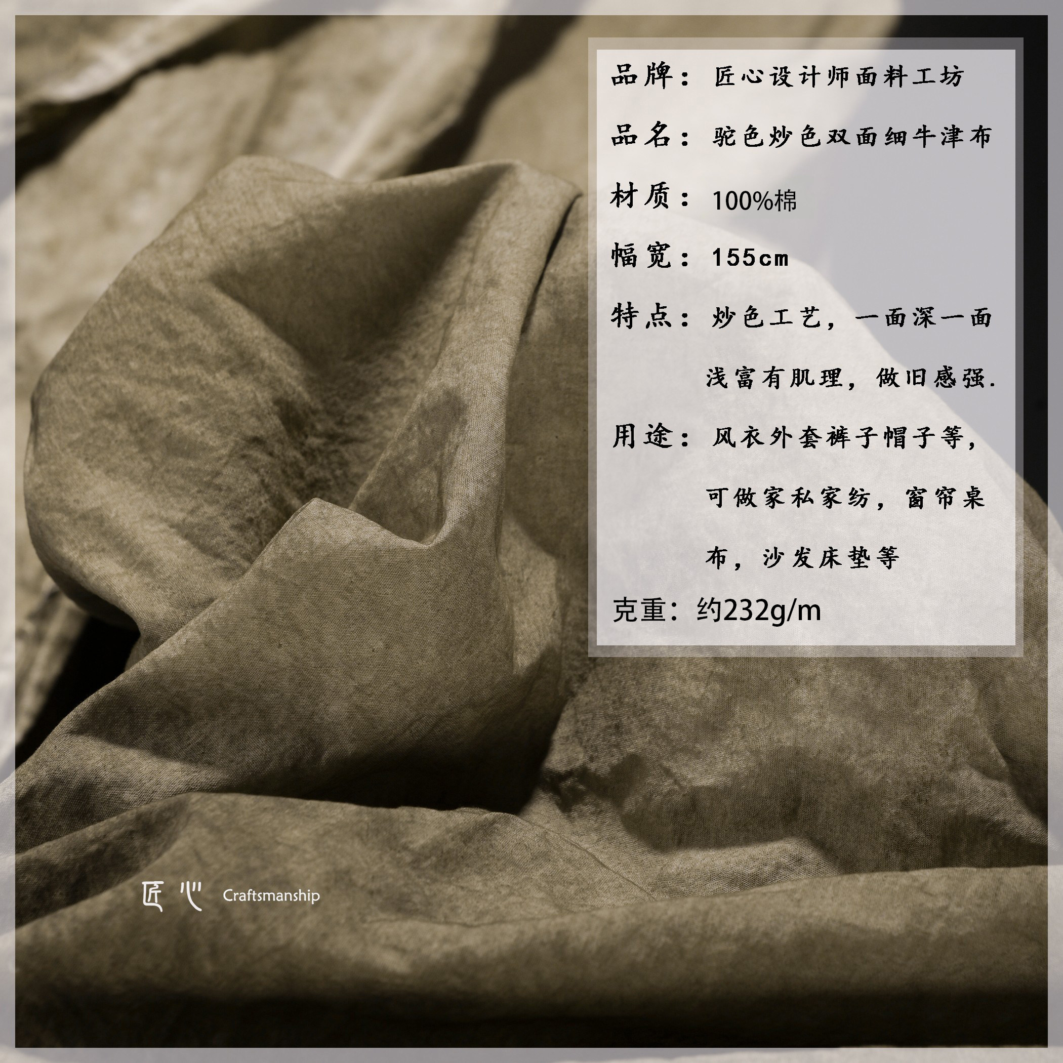 驼色做旧炒色牛津细帆布全棉高密植物染手工衬衫裤服装设计师面料